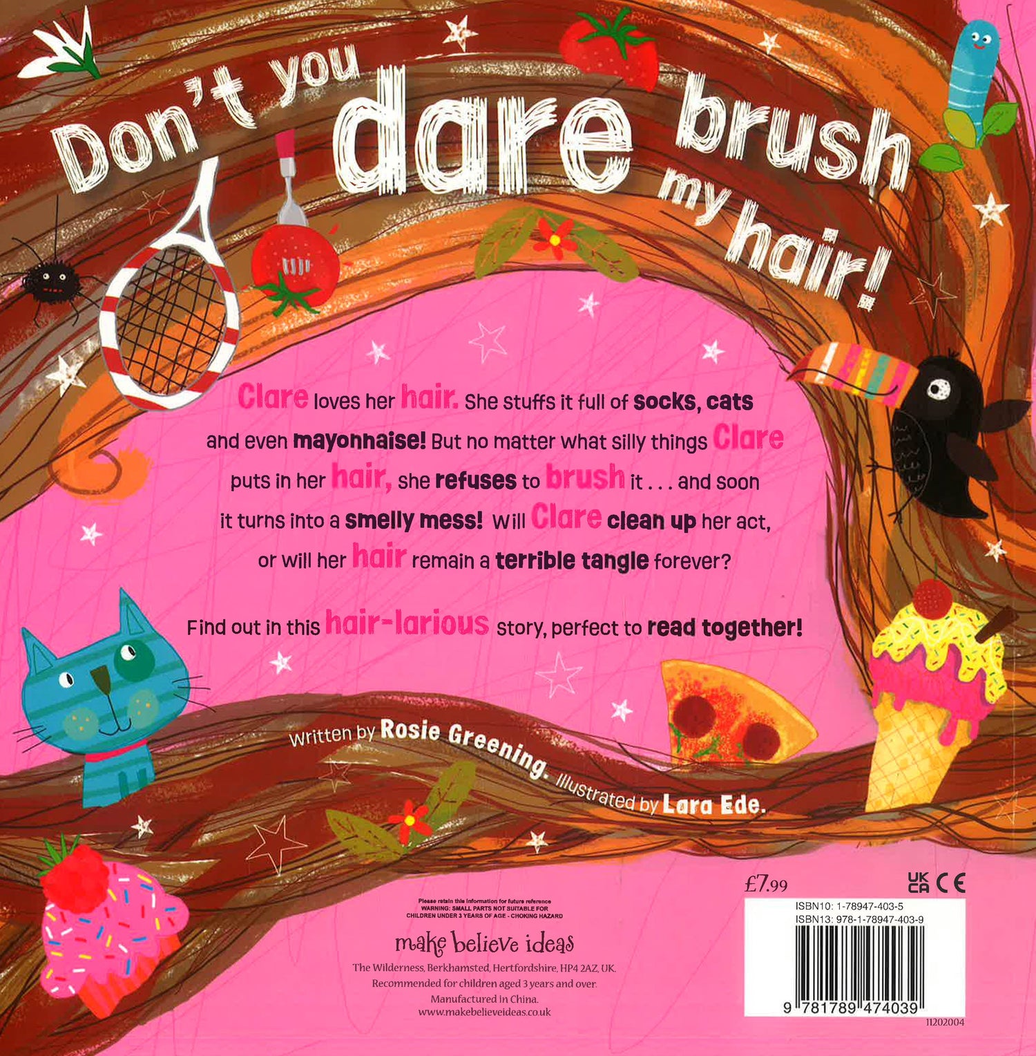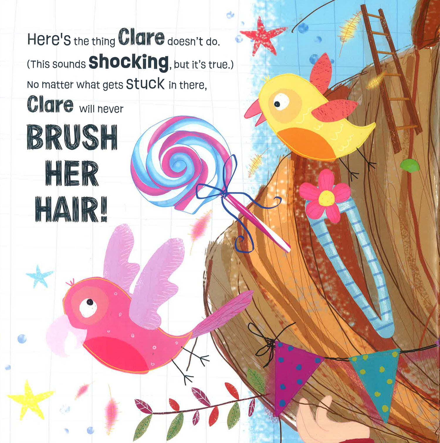 Clare loves her hair. And she doesn't just style it - she stuffs it full of cats, snacks and other funny things! But no matter how tangled or smelly it gets, Clare NEVER brushes her hair - much to her parents' dismay! This hilarious story will ring true for all parents, and is full of comic moments to entertain young readers. The book also has an amazing long, hairy fringe on the cover! FUNNY STORY ABOUT HAIR WITH AN AMAZING HAIRY FRINGE ON THE COVER.
