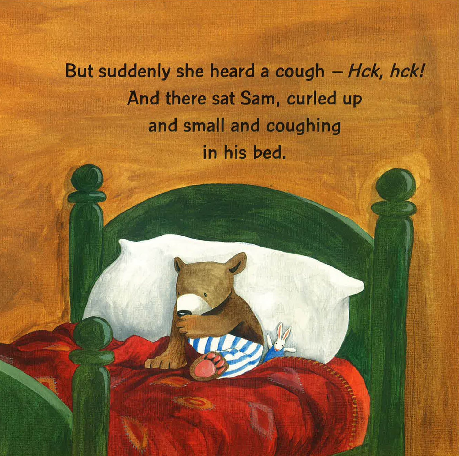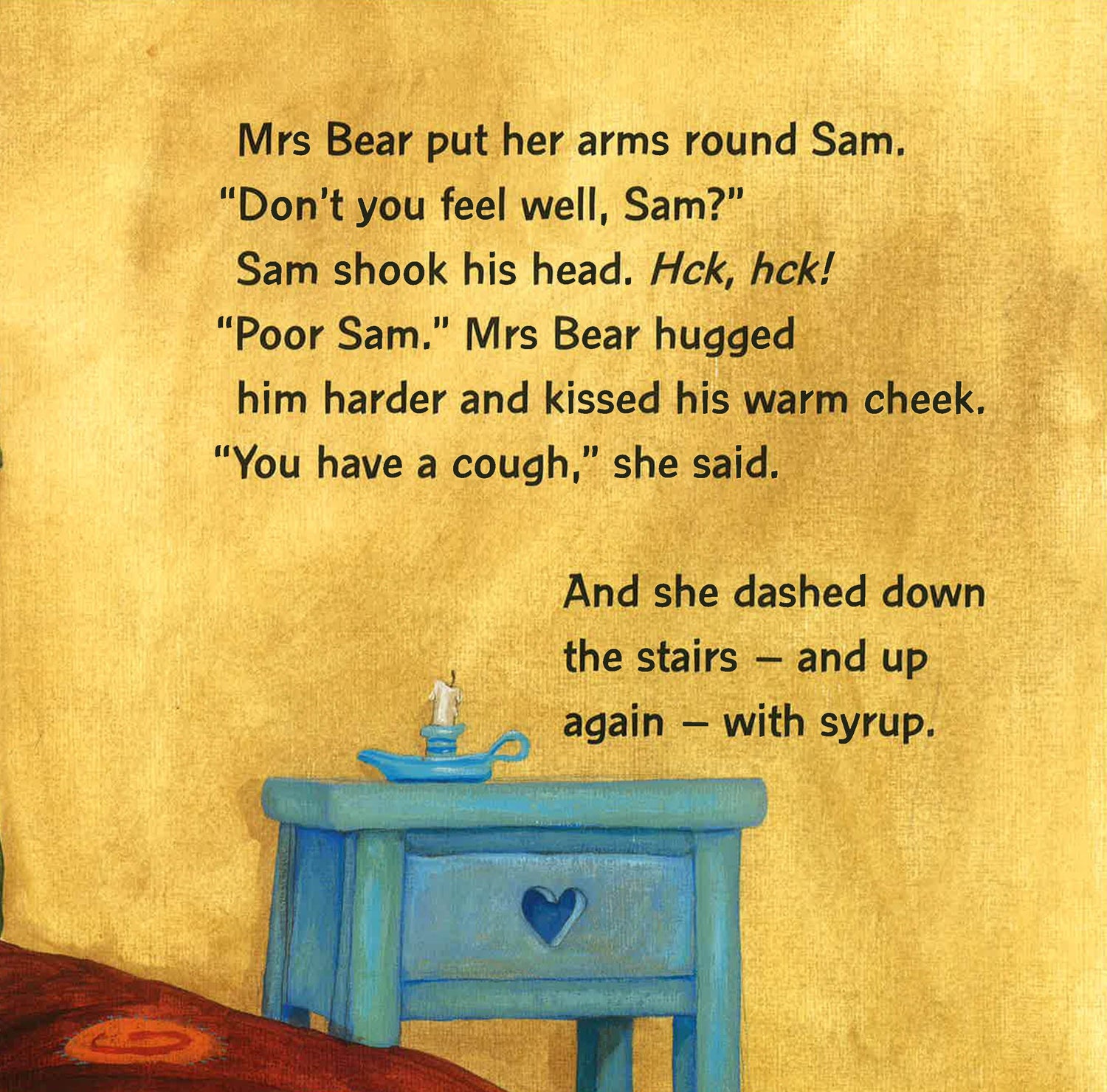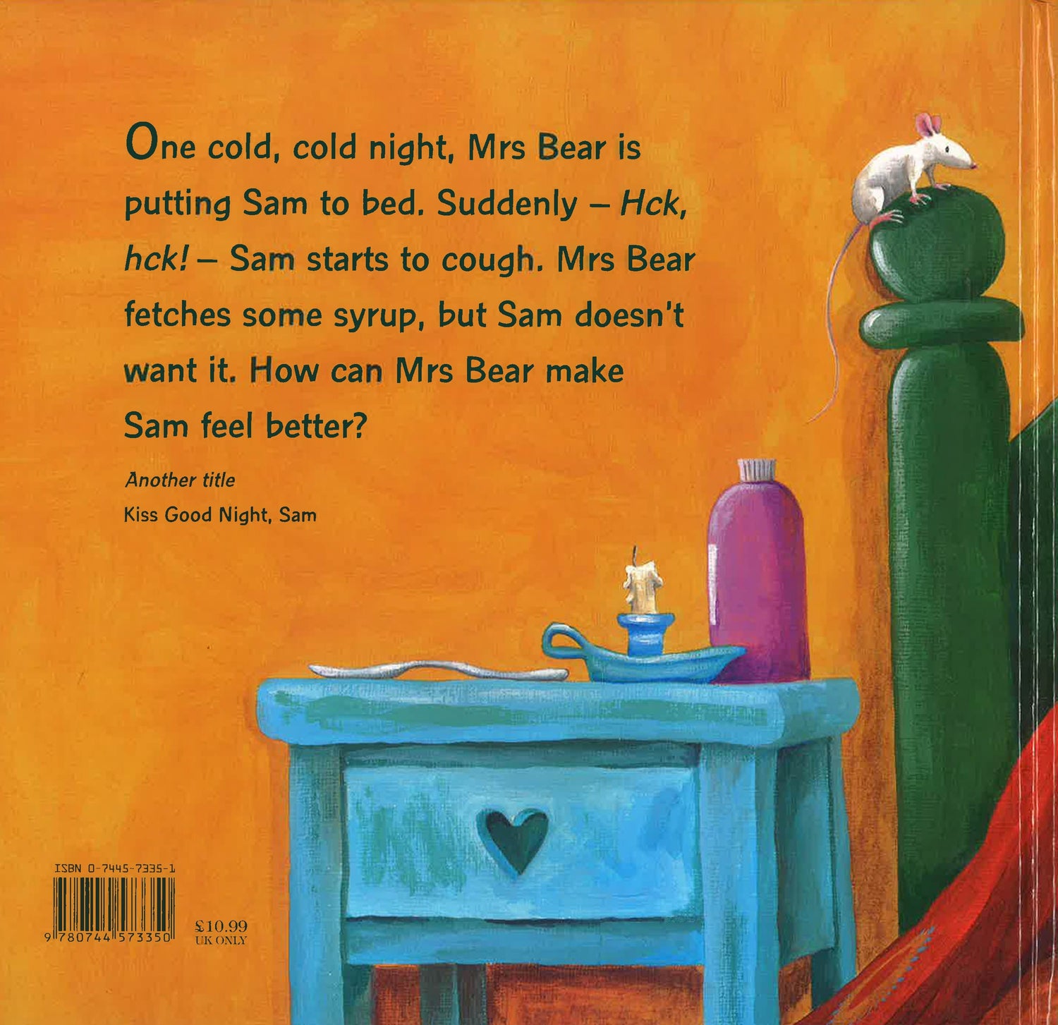 One cold, cold night, Mrs Bear is putting Sam to bed. "Hck hck," coughs Sam. So Mrs Bear fetches some syrup. But there's too much syrup on a too-big spoon, and Sam can't swallow it. Mrs Bear knows just what to do to make Sam feel better though, and together they sit up in a cosy chair, watching as the snow begins to fall outside. Parents and children everywhere will recognize the loving question and answer format of this cosy book - Anita Jeram's striking art style emanates warmth and light, and creates the perfect bedtime ambiance for parents and children to share.