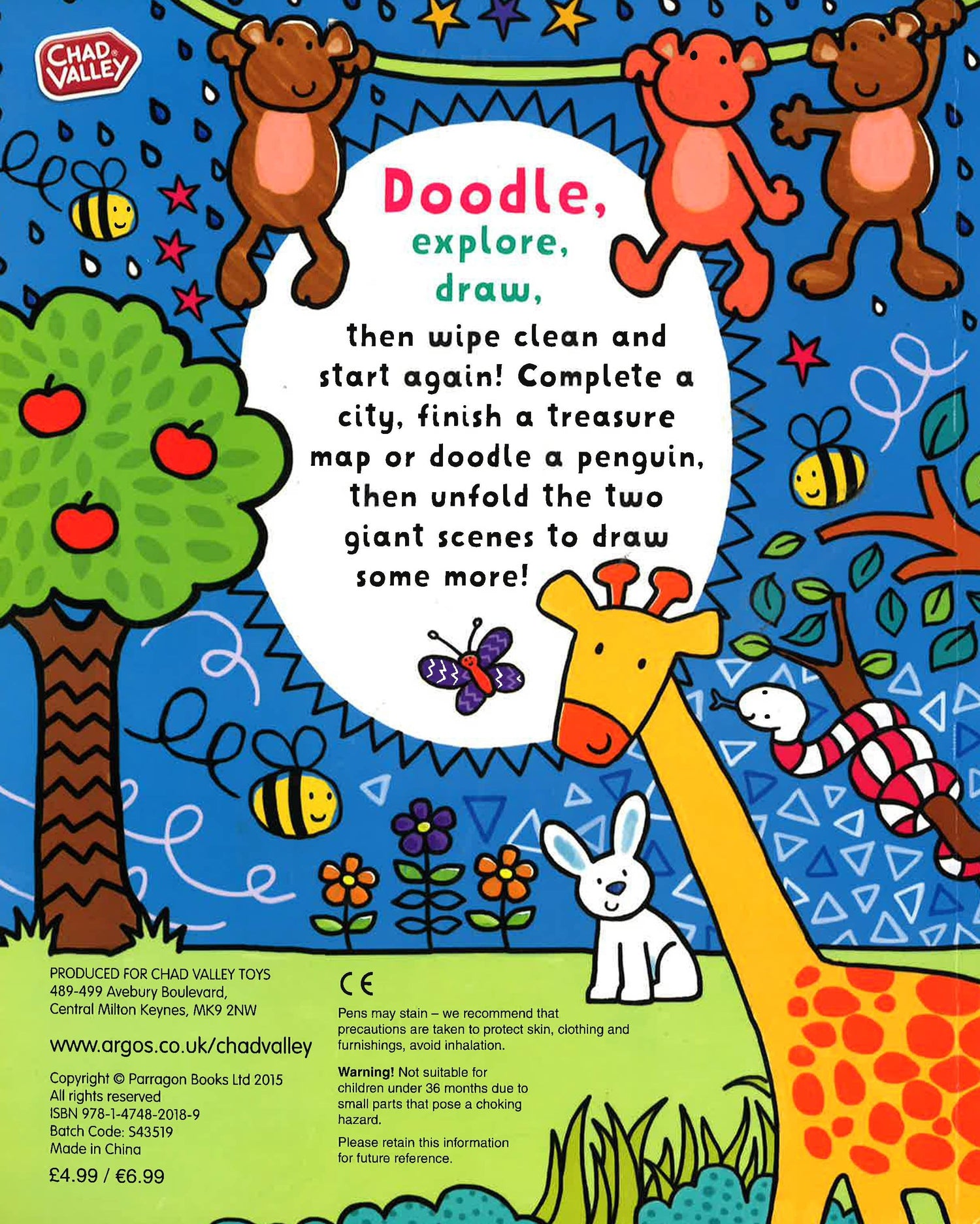 Doodle, Explore, Draw, then wipe clean and start again! Complete a city, finish a treasure map or doodle a penguin, then unfold the two giant scenes to draw some more!