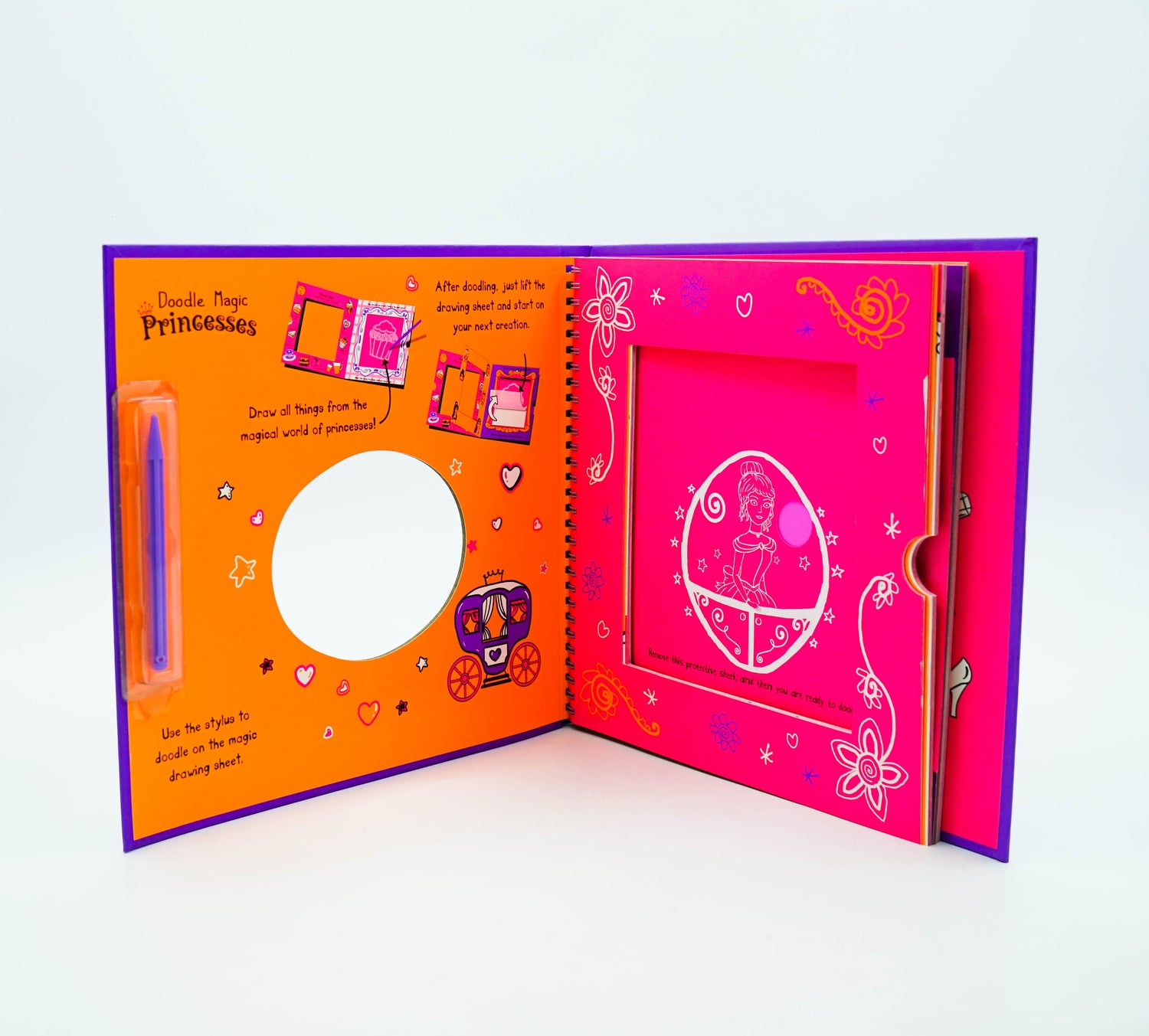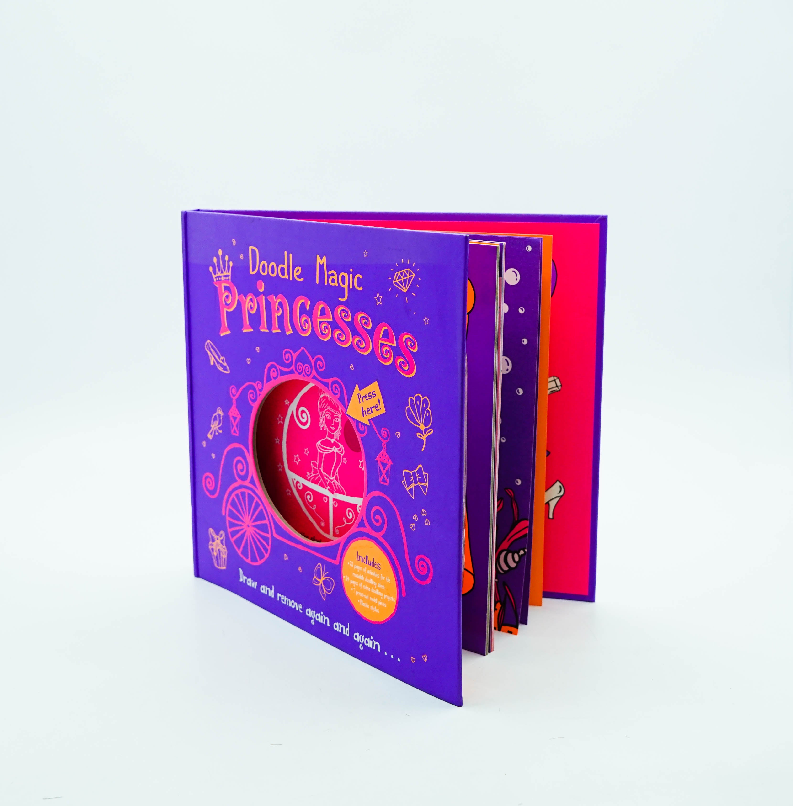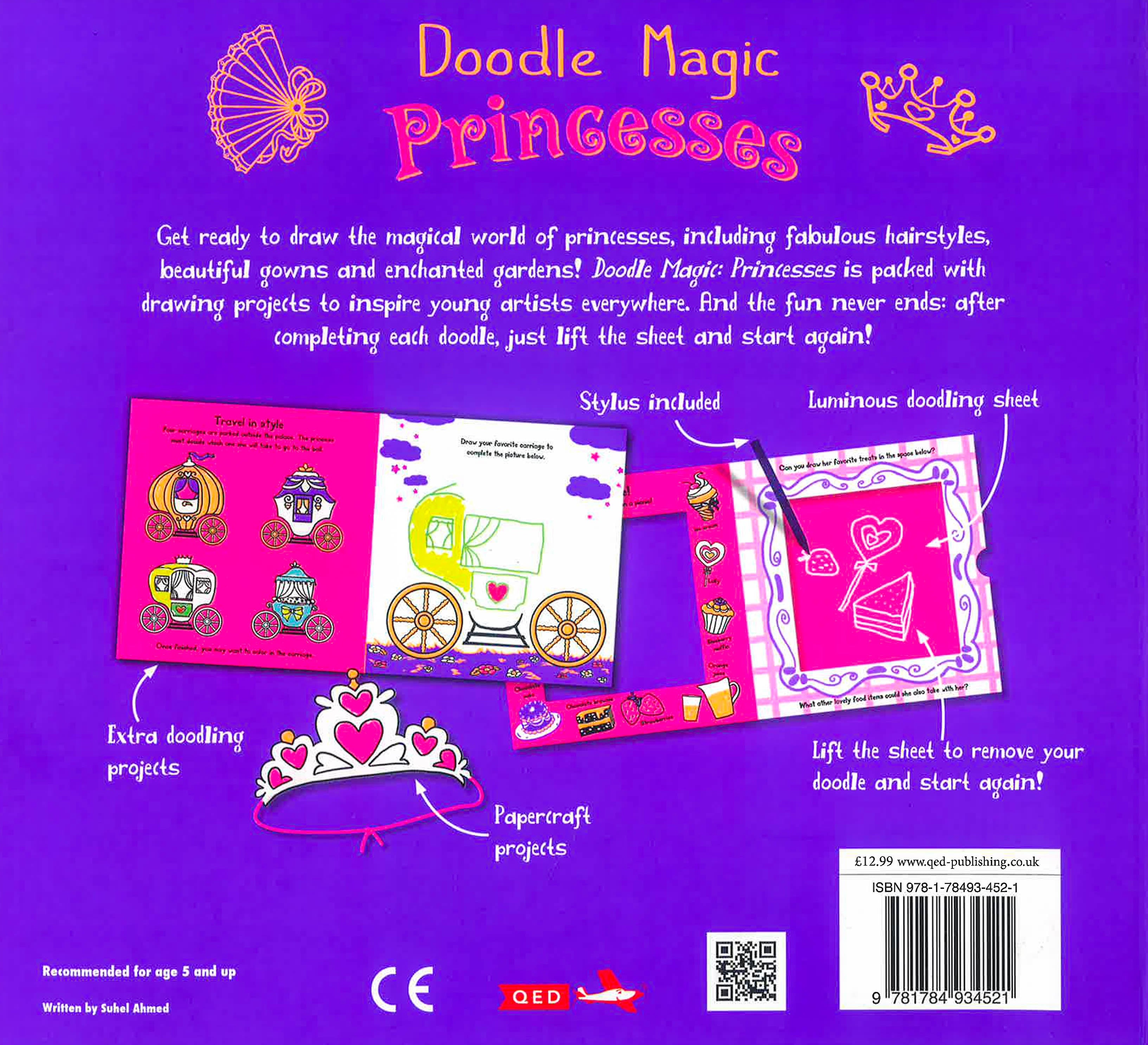 Draw never-ending Princess artworks on the reusable luminous screen, then test your drawing skills in the fun-packed activity pages, and finally complete three awesome papercraft projects. Get ready to draw a kingdom of gorgeous castles, princesses and royal parties. Doodle Magic Princesses is packed with projects to excite young artists everywhere. Be inspired by lots of ideas to draw and draw again on the lift-to-erase luminous layer. Also includes 32 drawing and colouring activities and three papercraft projects.