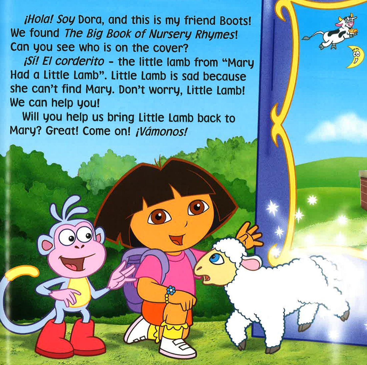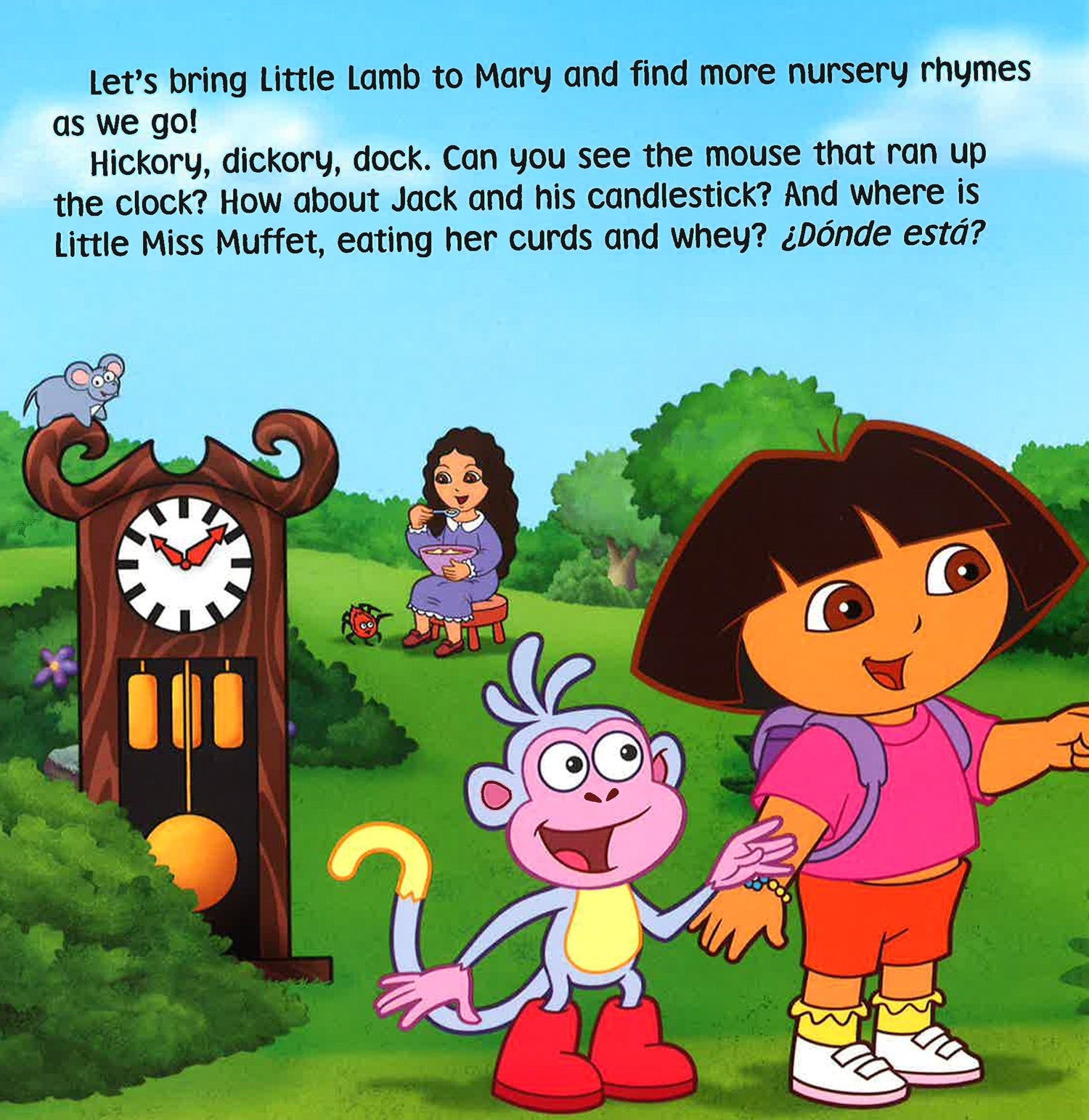 Little Lamb is lost! She can't find her friend Mary. Dora and Boots step into The Big Book of Nursery Rhymes to help Little Lamb find her way back to Mary. Along the way they meet all kinds of special nursery rhyme favourites!
