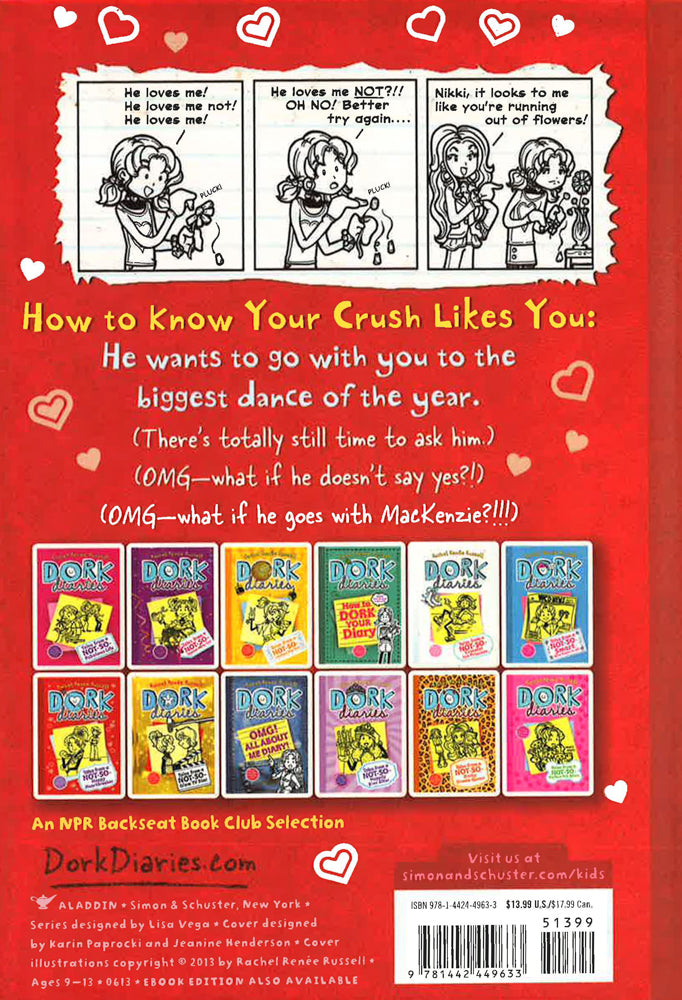 Love?and crushes?are in the air for Nikki Maxwell in this sixth book of the New York Times bestselling Dork Diaries series.It?s the biggest dance of the year and Nikki Maxwell is hoping her crush, Brandon, wants to be her date. But time is running out. What if he doesn?t want to go with her? Or worse?what if he ends up going with Mackenzie?!! In the sixth book in the blockbuster Dork Diaries series?now with more than 8 million copies in print?join Nikki, Chloe and Zoey as they tackle the topic of love, Dork Diaries style! * This book may have remainder mark
