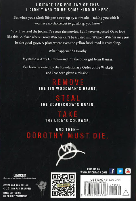 The New York Times bestselling first book in a dark new series that reimagines the Oz saga, from debut author Danielle Paige. I didn't ask for any of this. I didn't ask to be some kind of hero. But when your whole life gets swept up by a tornado-taking you with it-you have no choice but to go along, you know? Sure, I've read the books. I've seen the movies. I know the song about the rainbow and the happy little blue birds. But I never expected Oz to look like this. To be a place where Good Witches can't be trusted, Wicked Witches may just be the good guys, and winged monkeys can be executed for acts of rebellion. There's still a road of yellow brick-but even that's crumbling. What happened? Dorothy. They say she found a way to come back to Oz. They say she seized power and the power went to her head. And now no one is safe. My name is Amy Gumm-and I'm the other girl from Kansas. I've been recruited by the Revolutionary Order of the Wicked. I've been trained to fight. And I have a mission: Remove the Tin Woodman's heart. Steal the Scarecrow's brain. Take the Lion's courage. And-Dorothy must die.