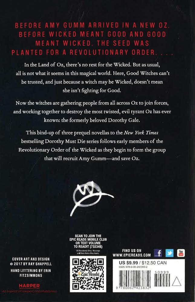 In this third collection of prequel novellas to the New York Times bestselling Dorothy Must Die series, Danielle Paige delivers a dark and compelling reimagining of L. Frank Baum’s The Wonderful Wizard of Oz. Before Amy Gumm lands in Oz in Dorothy Must Die, Dorothy Gale rules a twisted land where the Good have become truly Wicked - and it’s up to the Wicked to stop her reign. Follow your favorite witches from Dorothy Must Die as they form an elusive, secretive group known as the Revolutionary Order of the Wicked and begin training their own army to defeat Dorothy. If the Order wants to save Oz, they’ll need every recruit they can find. But who has what it takes to join the cause?