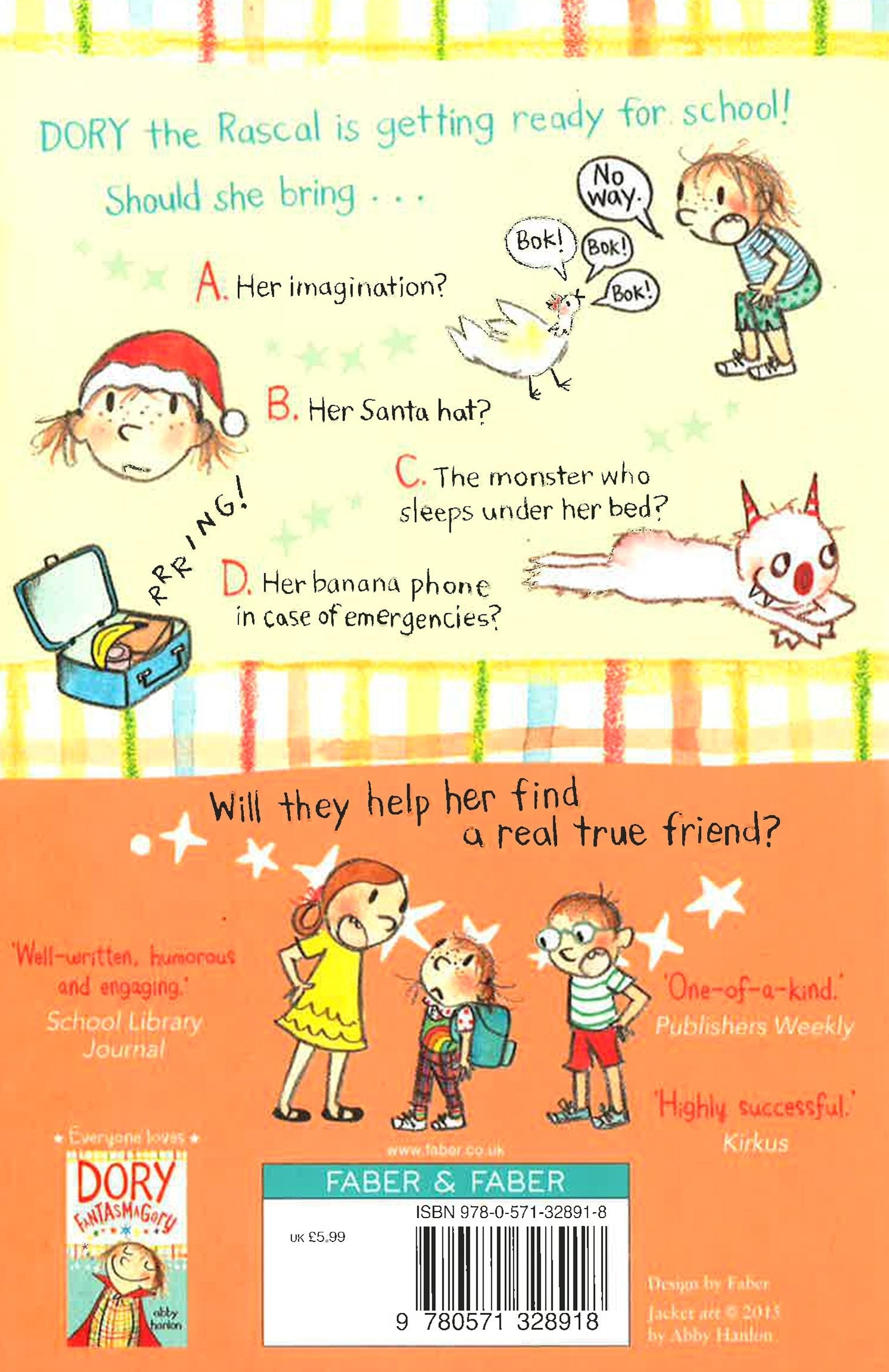 A Real True Friend: An actual kid everyone can see but who wants to play with you anyway. Dory's so excited for her first day at school. Her big brother and sister warn her that if she wants to fit in she ought to leave her imaginary friend, Mary, at home - or better yet, her whole imagination! But being boring is just about as far from being Dory as you can get. And on her very first day she meets someone new, and wonderful - a little girl whose imagination and style are just about as wild as her own! Now all she has to do is convince her siblings that she's not making it all up . . .