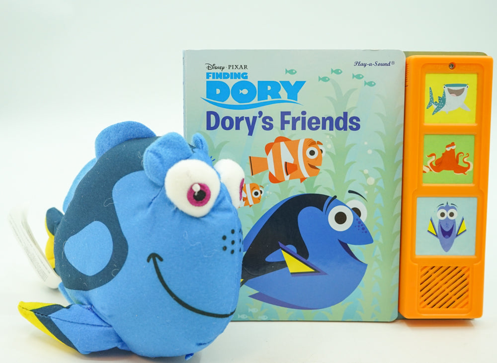 Join Dory and her friends under the sea! This amazing set includes a 3-button sound book and a cuddly and adorable Dory plush. Your little one will love getting comfortable, snuggling with Dory, and enjoying a great book!