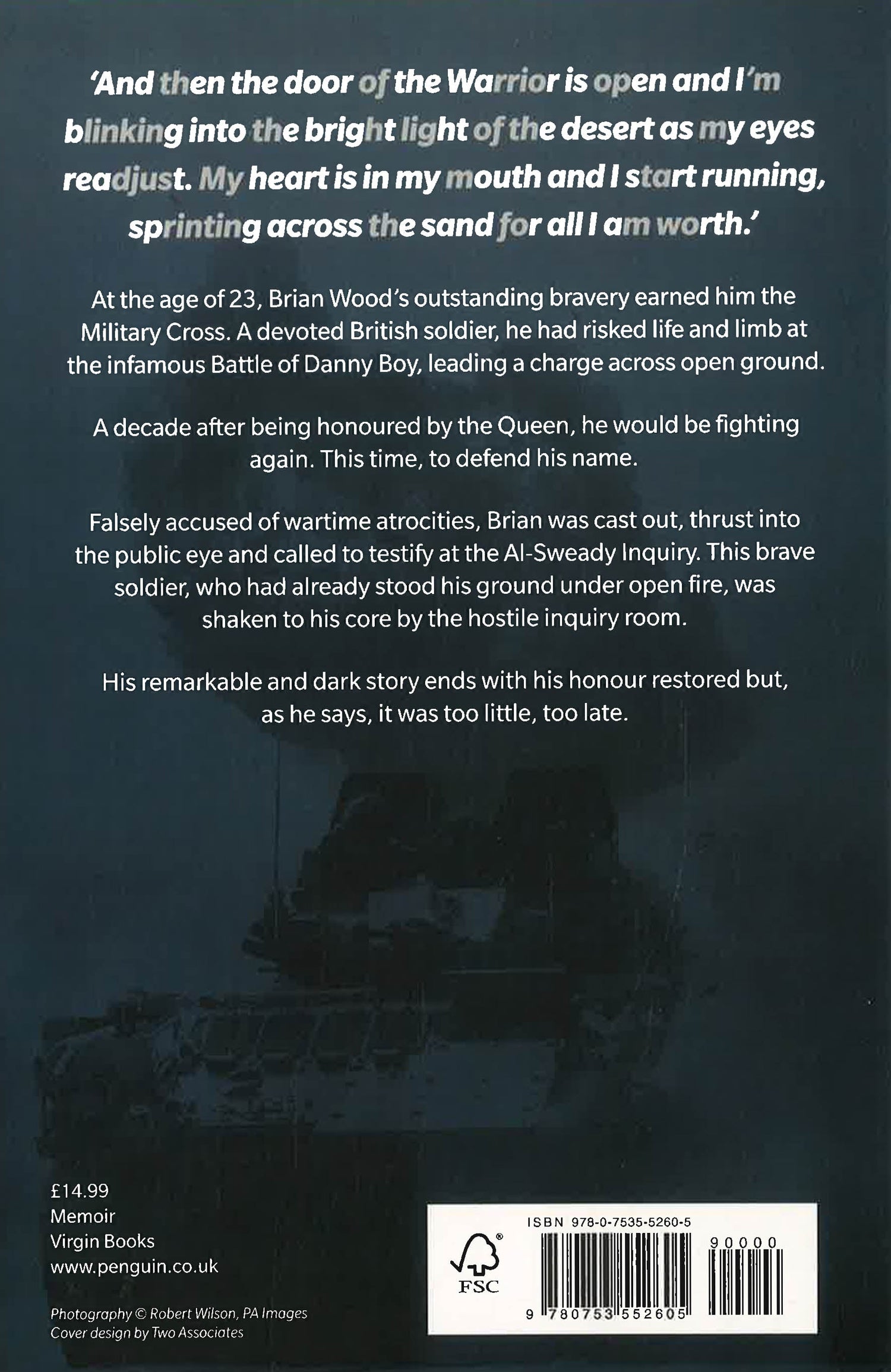 In this compelling memoir, Brian speaks powerfully and movingly about the three battles in his life, from being ambushed with no cover, to the mental battle to adjust at home, to being falsely accused of hideous war crimes. It's a remarkable and dark curve which ends with his honour restored but, as he says, it was too little, too late.
