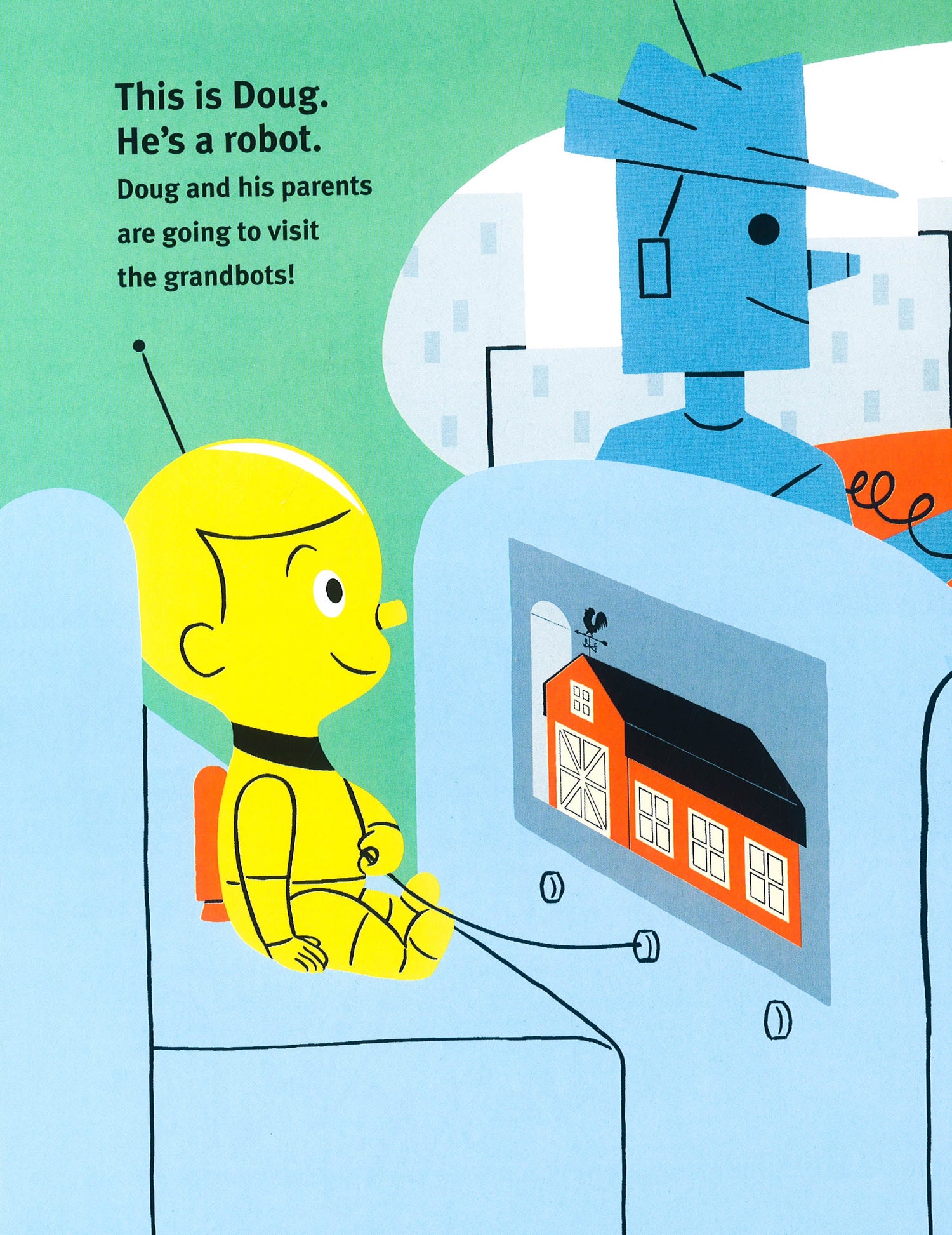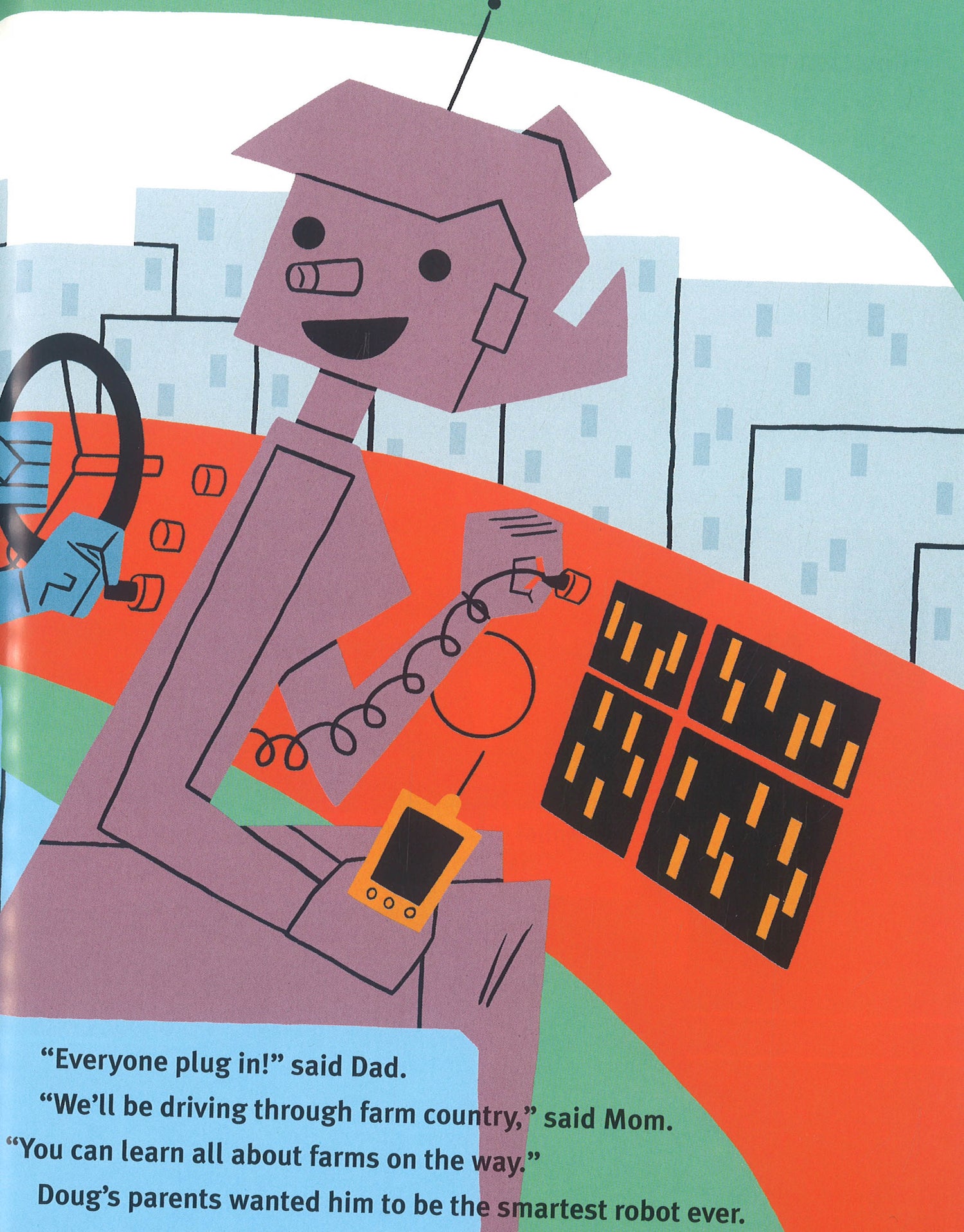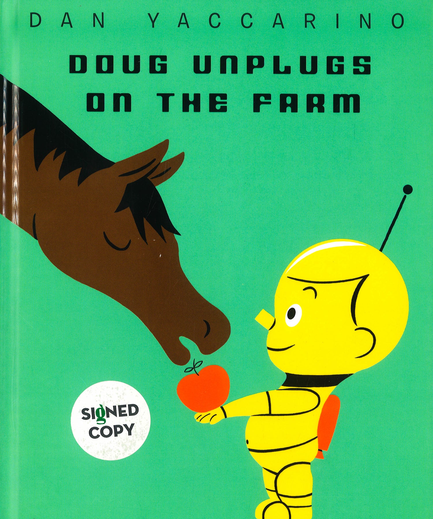 A high-tech robot boy enjoys a day of low-tech fun on the farm.Doug and his parents are off to visit the grandbots. But when their journey is interrupted by some sheep in the road, Doug goes from downloading information about farm animals to actually interacting with them! Doug gets to learn by doing--he herds sheep, milks a cow, gathers eggs, and then uses good old-fashioned "horse sense" to get their car back on the road. Doug Unplugs on the Farm is a lively celebration of farm life and the value of hands-on learning that will encourage kids to go screen-free and explore the real world! A terrific companion to Dan Yaccarino's first book of low-tech learning, Doug Unplugged.*This book may have remainder mark*