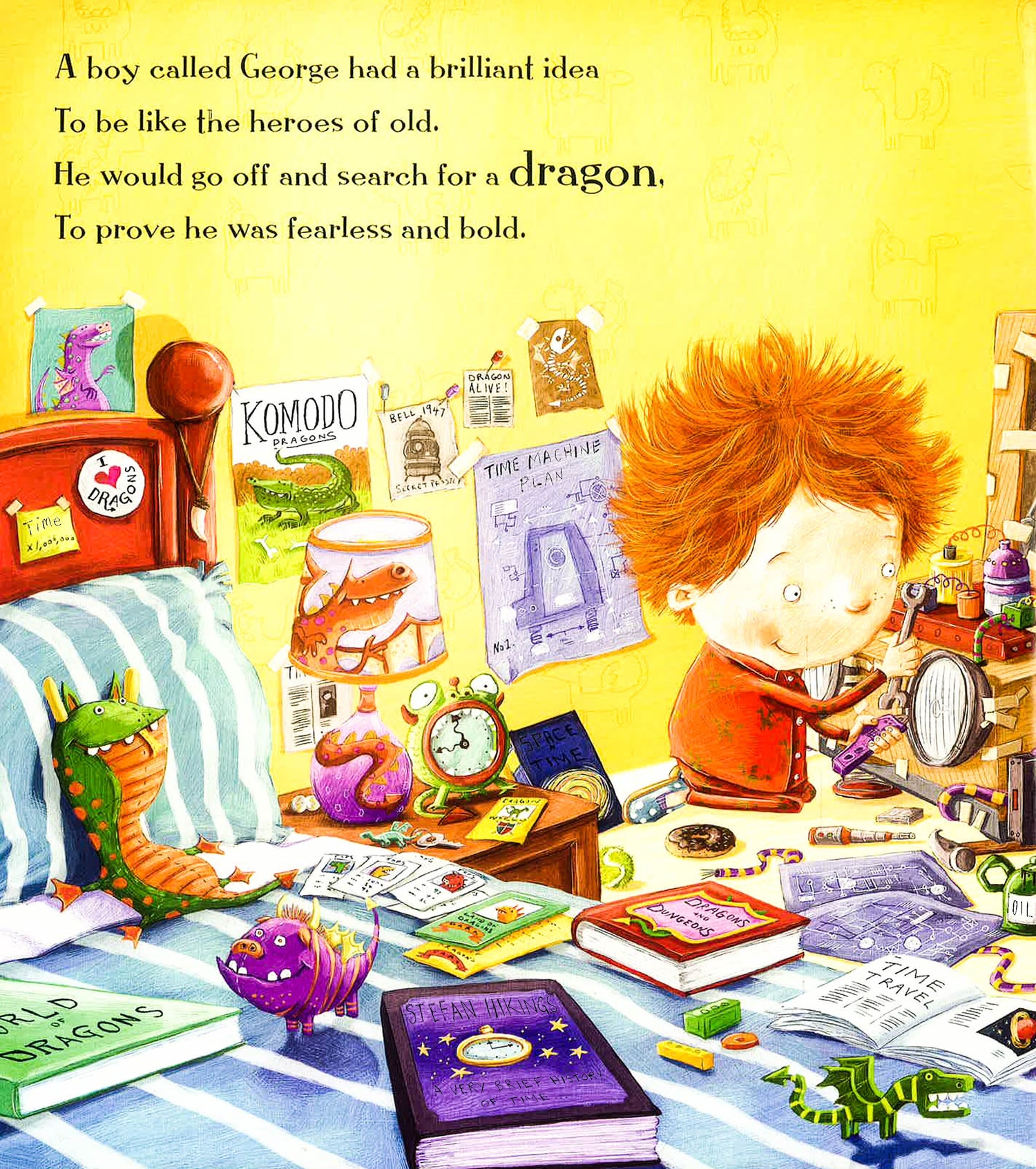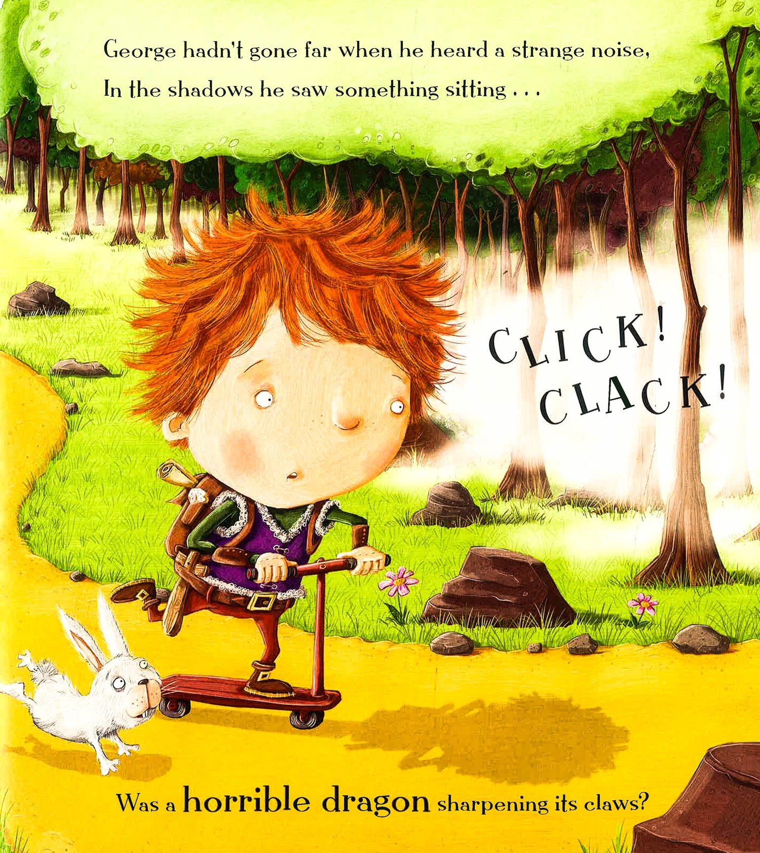 George climbs in his time machine with only a scooter, some cakes and tasty doughnuts to aid him in his quest. When he arrives in long, long ago he spies a dragon straight away! Or does he ... ?