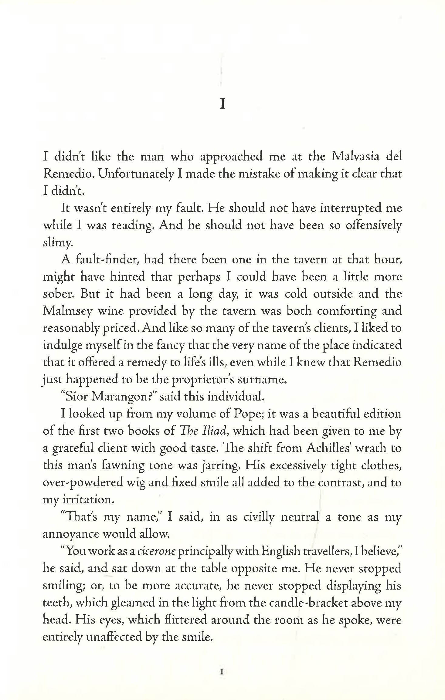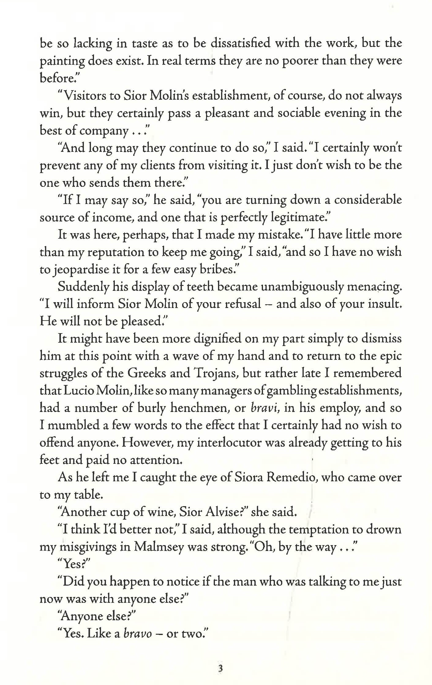 After reluctant spy Alvise Marangon is arrested in a tavern brawl, he is summoned to meet the Missier Grande, head of the city's powerful secret service. Rather than being expelled from the city, he is coerced into a top-secret investigation of the mysterious death of one of the service's agents and the existence of a mysterious secret society. Apparently formed by four rakish noblemen, it is known as the Four Horsemen and seems to have connections with the Ottoman Empire. As Alvise delves into the case, he finds all the hallmarks of assassination and corruption, and is soon profoundly out of his depth and on the run.