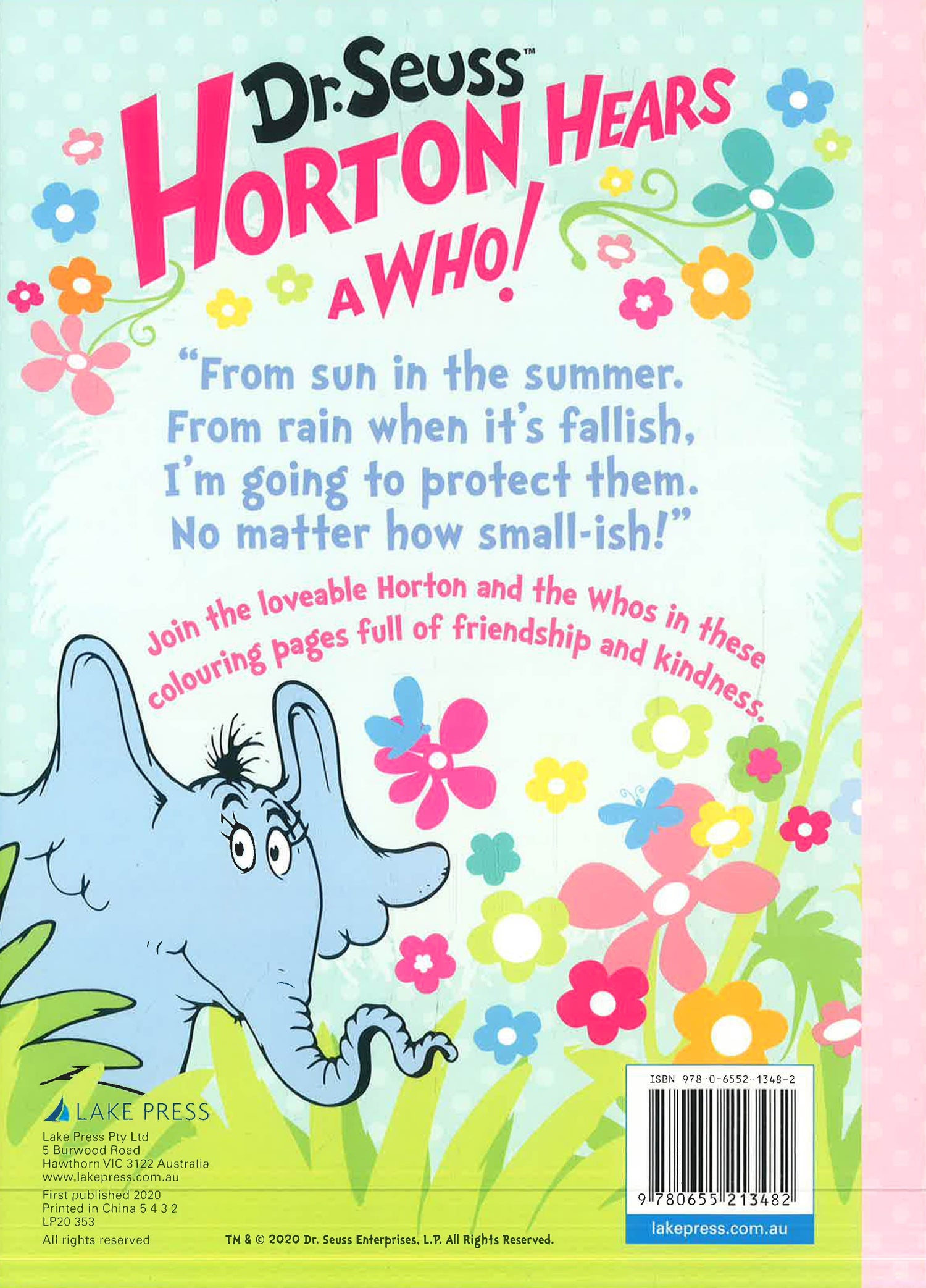 Horton the Elephant is one of Dr Seuss's most beloved creations, a BIG, big-hearted elephant, who exhibits the values of determination, kindness and caring. In this colouring book, all new designs showcase the classic Seuss-ian illustrations and highlight the values of the story.
