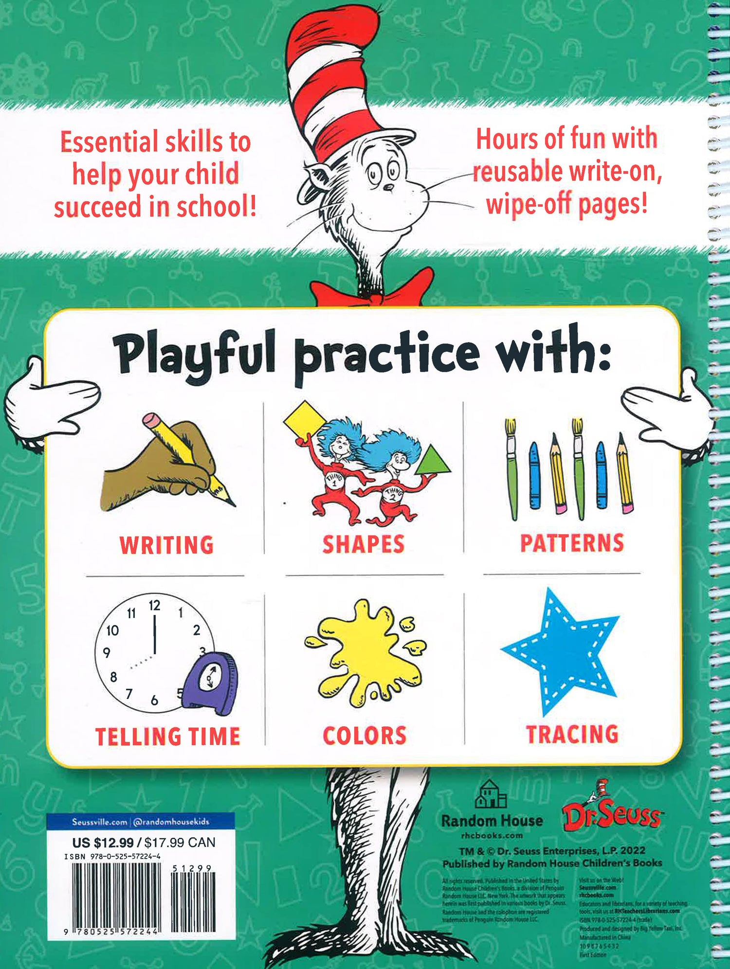 Children ages 3-5 will have fun learning and playing with all their favorite Dr. Seuss characters in this wipe-clean workbook! Filled with teacher-reviewed, kid-friendly activities that build important foundational learning skills. Includes a dry-erase marker!