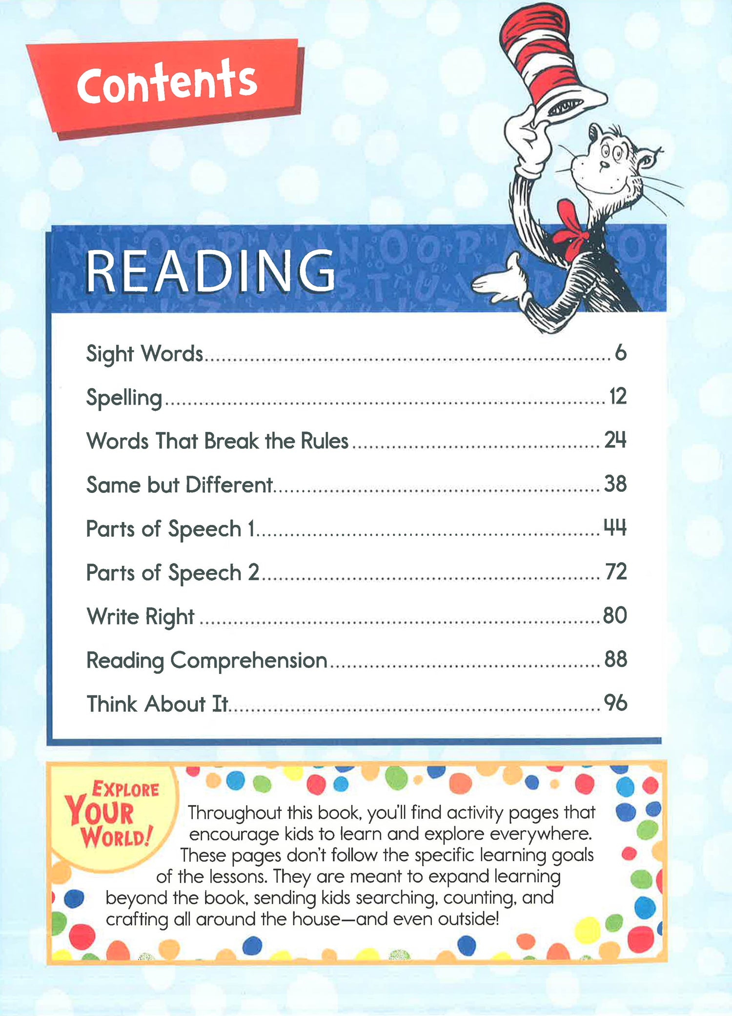 This multi-subject, curriculum-based workbook is developed by education experts, designed to give little learners in 2nd grade a well-balanced education. With perforated pages for easy on-the-go use, your child will learn essential skills for school and life—while having fun! Each playful exercise features familiar Dr. Seuss characters that reinforce school lessons and ensure success in and out of the classroom.