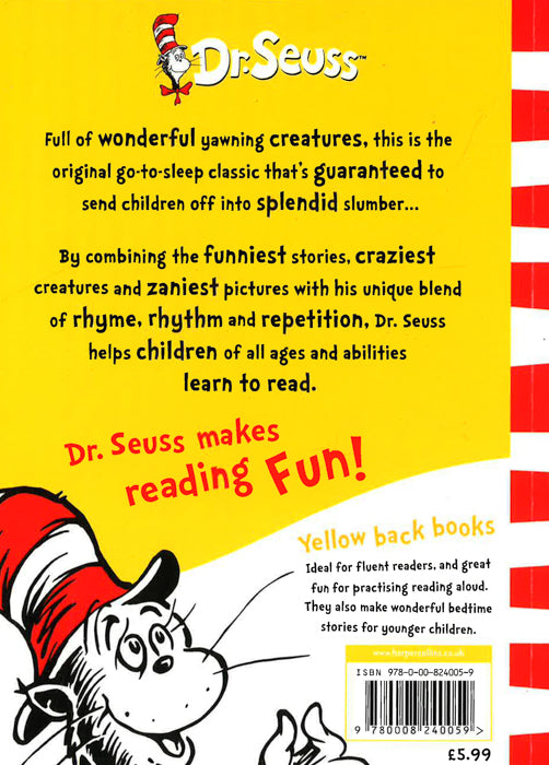 A sleepy tale full of wonderful yawning creatures from the iconic Dr. Seuss, gets a brand new look! This book is the original (and the best) remedy for children who don't want to go to sleep.