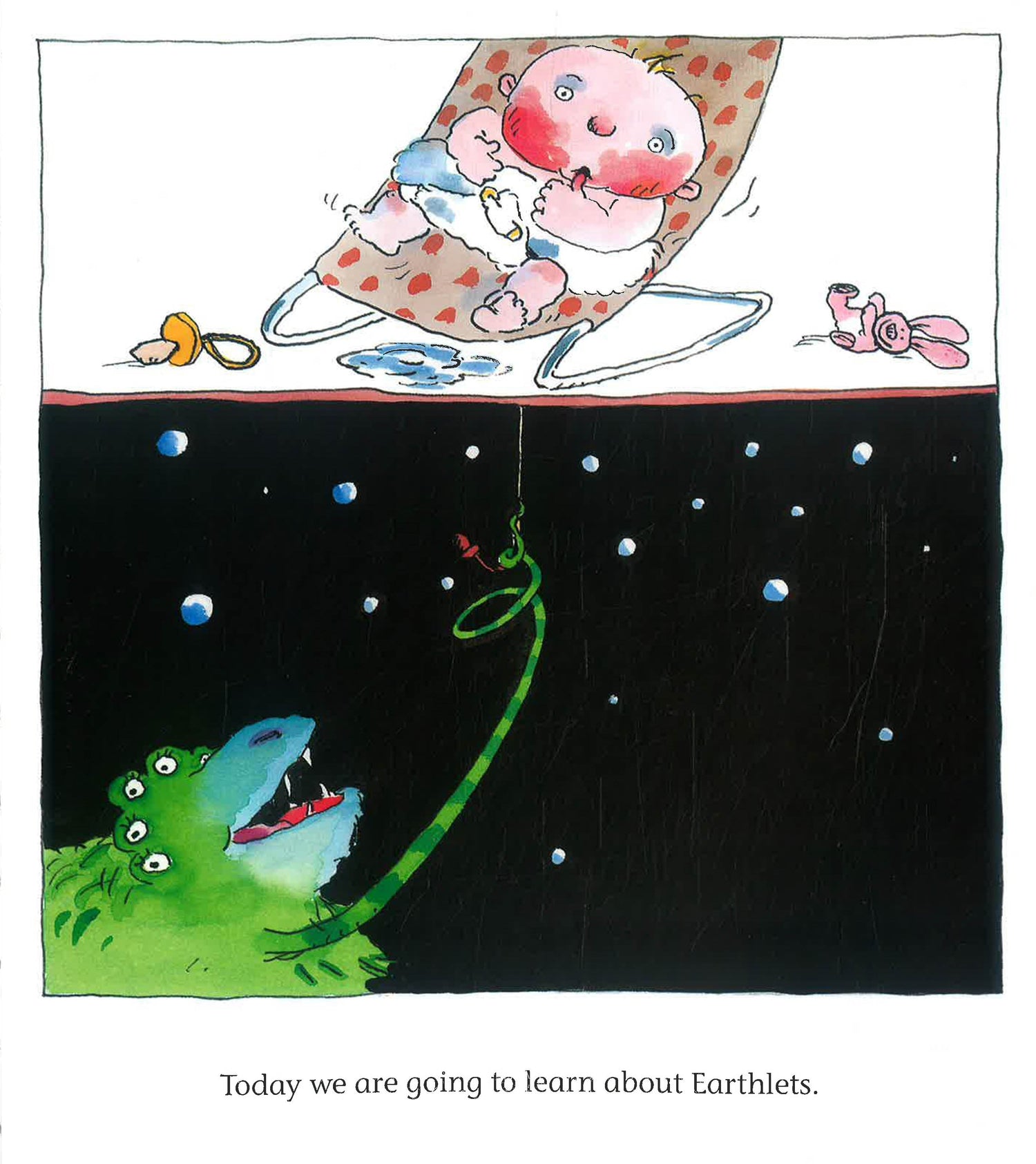 In this way Dr Xargle, our friendly alien teacher, begins to teach his class about humans and babies.