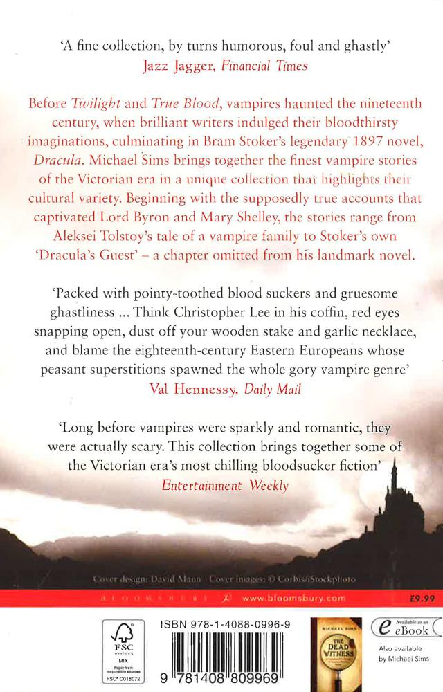 Even in the twenty-first century, the undead walk among us . . . Before Twilight and True Blood, vampires haunted the nineteenth century, when brilliant writers indulged their bloodthirsty imaginations, culminating in Bram Stoker's legendary 1897 novel, Dracula. Acclaimed author and anthologist Michael Sims brings together the finest vampire stories of the Victorian era in a unique collection that highlights their cultural variety. Beginning with the supposedly true accounts that captivated Byron and Shelley, the stories range from Aleksei Tolstoy's tale of a vampire family to Fitz James O'Brien's invisible monster to Mary Elizabeth Braddon's rich and sinister widow, Good Lady Ducayne. Sims also includes a nineteenth-century travel tour of Transylvanian superstitions, and finishes the collection with Stoker's own Dracula's Guest - a chapter omitted from his landmark novel. Vampires captivated Victorian society, and these wonderful stories demonstrate how Romantic and Victorian writers refined the raw ore of peasant superstition into a whole vampire mythology of aristocratic decadence and innocence betrayed.