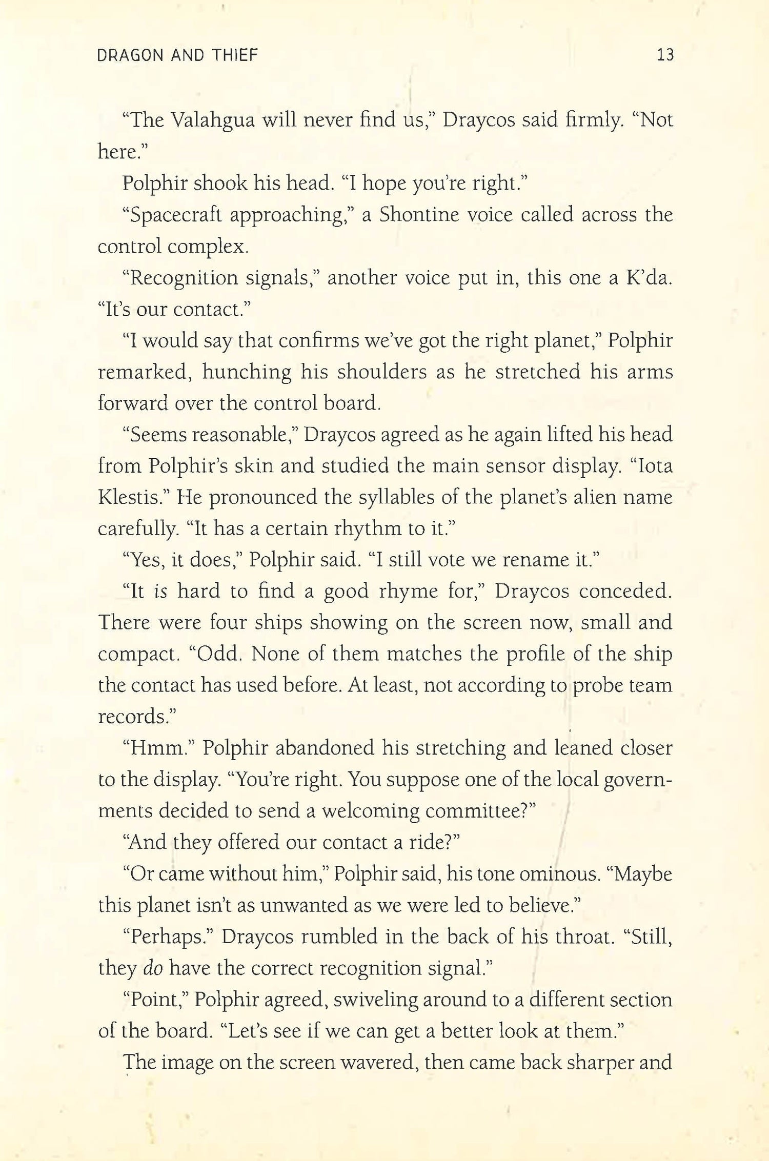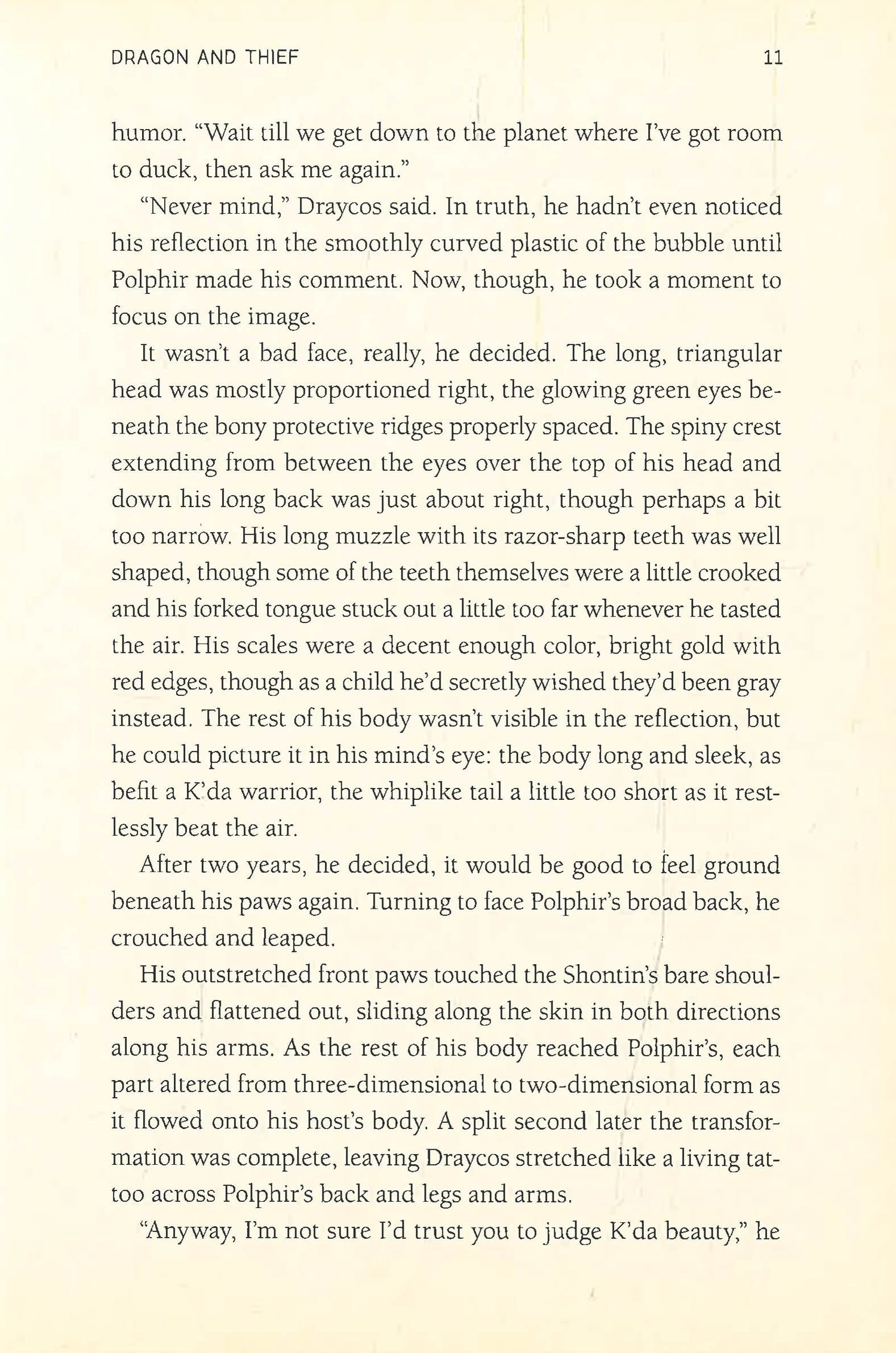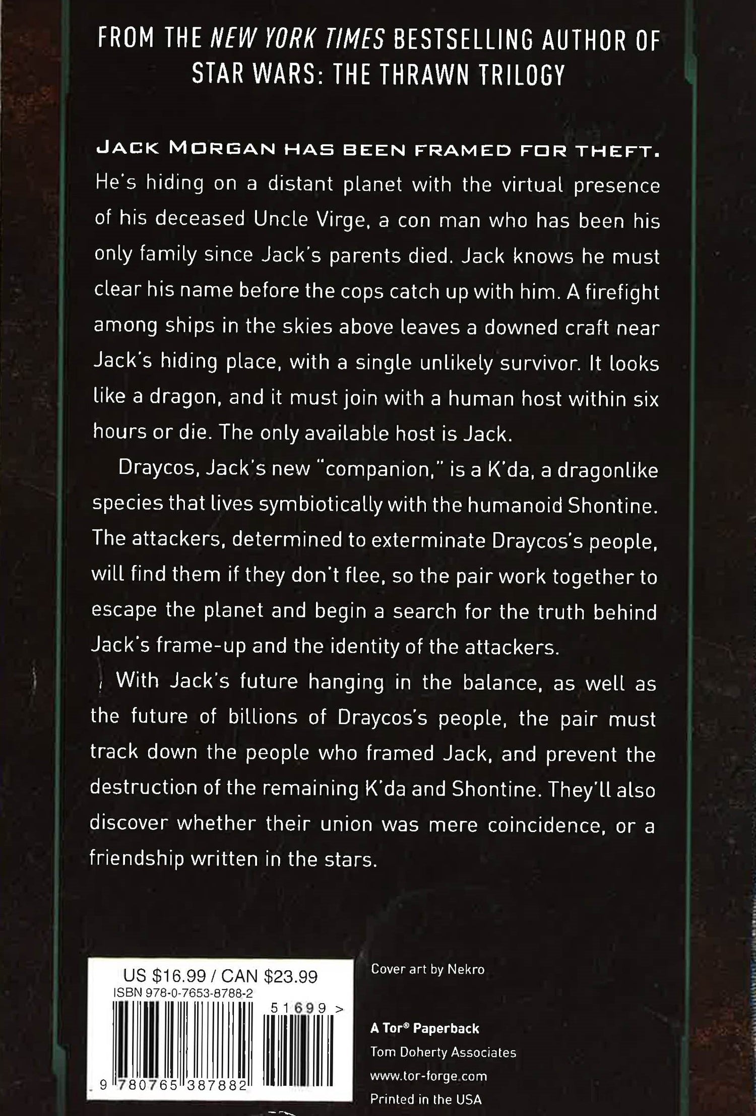 New edition of the first book in the popular Dragonback science fiction series from Hugo Award-winning author Timothy ZahnTimothy Zahn has been entertaining science fiction readers young and old for more than twenty years with exciting, thought-provoking adventures. Dragon and Thief is sure to delight all his fans and gain new teen and adult readers as well. Jack Morgan has been framed for theft. He's hiding on a distant planet with the virtual presence of his deceased Uncle Virge, a con man who has been his only family since Jack's parents died. Jack knows he must clear his name before the cops catch up with him. A firefight among ships in the skies above leaves a downed ship near Jack's hiding place, with a single unlikely survivor. It looks like a dragon, and it must join with a human host within six hours or die. The only available host is Jack. Draycos, Jack's new "companion," is a K'da, a dragon-like species that lives symbiotically with the humanoid Shontine. The attackers, determined to exterminate Draycos's people, will find them if they don't flee; so the pair works together to escape the planet and begin a search for the truth behind Jack's frame-up and the identity of the attackers.With Jack's future hanging in the balance, as well as the future of billions of Draycos's people, the pair must track down the people who framed Jack, and prevent the destruction of the remaining K'da and Shontine. They'll also discover whether their union was mere coincidence, or a friendship written in the stars."Zahn keeps the story moving at breakneck speed."--Publishers Weekly