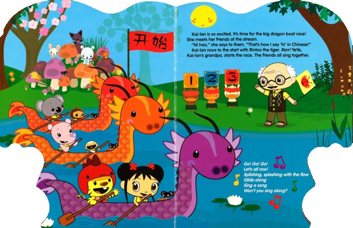 Play-a-Tune Tale: Ni Hao, Kai-Lan Dragon Boat Festival joins Nickelodeon s Kai-lan and her friends Rintoo the tiger, Hoho the monkey, Lulu the rhino, and Tolee the koala on an exciting dragon boat race. Rintoo feels mad when he loses the first race, but he works together with his teammate to win the next race. Preschoolers learn an important lesson about sportsmanship and friendship.