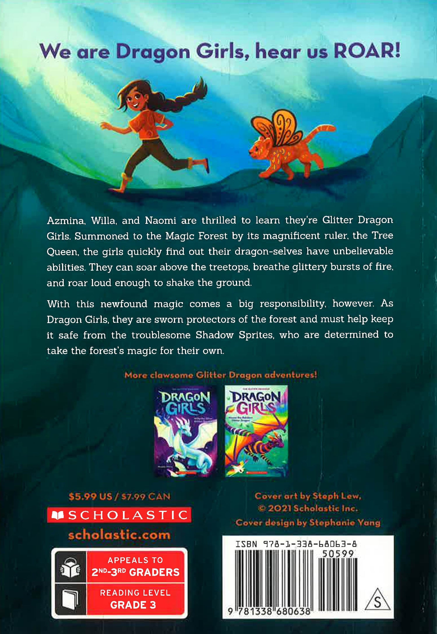 We are Dragon Girls, hear us roar!Azmina, Willa, and Naomi are thrilled to learn they're Glitter Dragon Girls. Summoned to the Magic Forest by its magnificent ruler, the Tree Queen, the girls quickly find out their dragon-selves have unbelievable abilities. They can soar above the treetops, breathe glitter-y bursts of fire, and roar loud enough to shake the ground. With this newfound magic comes a big responsibility, however. As Dragon Girls, they are sworn protectors of the forest and must help keep it safe from the troublesome Shadow Sprites, who are determined to take the forest's magic for their own.