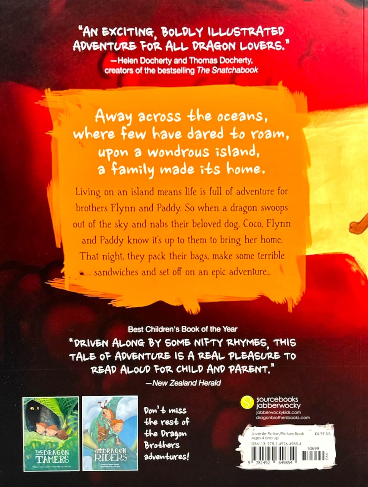 Living on an island means life is full of adventure for brothers Flynn and Paddy. So when a dragon swoops out of the sky and nabs their beloved dog, Coco, Flynn and Paddy know it's up to them to bring her home. That night, they pack their bags, make some terrible sandwiches, and set off on an epic adventure…