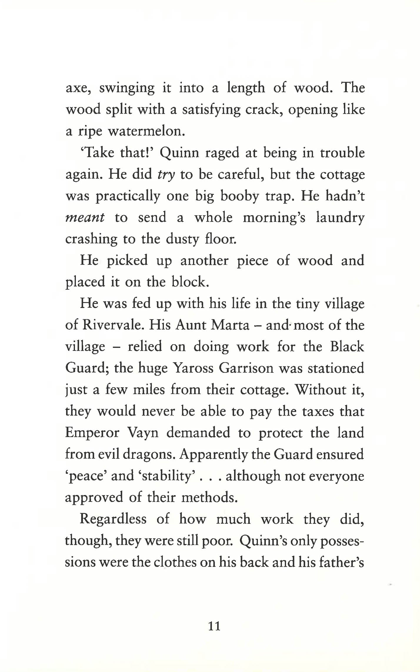Now the realm is in ruins and Vayn's Black Guard rampage through it, taking whatever they want. When Vayn's nephew, Quinn, discovers that he's the Crown Prince, the true heir, rescued and brought up by his former palace nursemaid, he swears to stand up to his uncle and claim what is rightfully his. Ignus the Flame Dragon has been trapped in human form as a blacksmith in the Floating Mountains. With the help of Thea, a feisty girl with magic skills and an uncertain past, Quinn must break the spell and return Ignus to his true Dragon Knight destiny. The first in an exciting new dragon-fantasy series for 9-12 year olds.