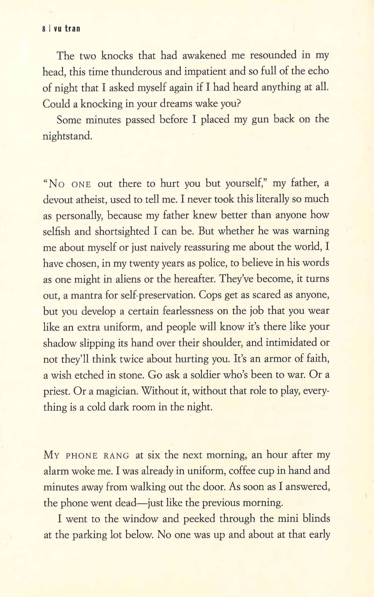 Robert, an Oakland cop, still can't let go of Suzy, the enigmatic Vietnamese wife who left him two years ago. Now she's disappeared from her new husband, Sonny, a violent Vietnamese smuggler and gambler who's blackmailing Robert into finding her for him. As he pursues her through the sleek and seamy gambling dens of Las Vegas, shadowed by Sonny's sadistic son, "Junior," and assisted by unexpected and reluctant allies, Robert learns more about his ex-wife than he ever did during their marriage. He finds himself chasing the ghosts of her past, one that reaches back to a refugee camp in Malaysia after the fall of Saigon, as his investigation soon uncovers the existence of an elusive packet of her secret letters to someone she left behind long ago. Although Robert starts illuminating the dark corners of Suzy's life, the legacy of her sins threatens to immolate them all. Vu Tran has written a thrilling and cinematic work of sophisticated suspense and haunting lyricism, set in motion by characters who can neither trust each other nor trust themselves. This remarkable debut is a noir page-turner resonant with the lasting reverberations of lives lost and lives remade a generation ago.