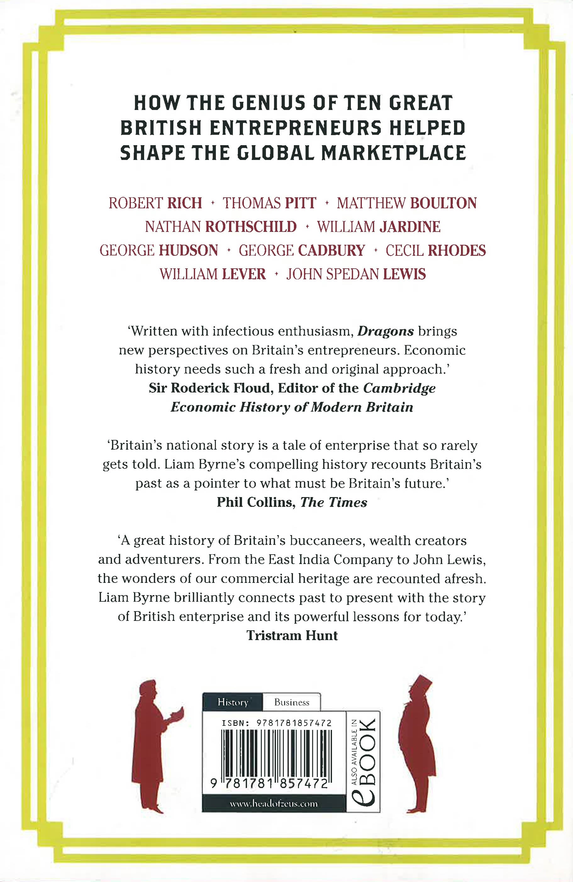 Britain's rise to global dominance from the 16th century owed as much to the vision and creativity of traders, industrialists and bankers as it did to wars of conquest fought by military men. DRAGONS tells the story of British business endeavour through the lives of ten titans of commerce. Beginning with the Tudor merchants who transformed England's economy via trade with the New World, Liam Byrne traces an entrepreneurial golden line through men such as Thomas Pitt, saviour of the East India Company; financier Nathan Rothschild, creator of the modern bond market; William Lever, brand-builder, philanthropist, and creator of Britain's first great multinational; and John Spedan Lewis, founder of the employee-owned John Lewis Partnership. At the start of the 21st century Britain remains a major economic power. DRAGONS is both a rousing celebration of British business genius and a fascinatingly informative narrative of a neglected but essential strand of our island's story.