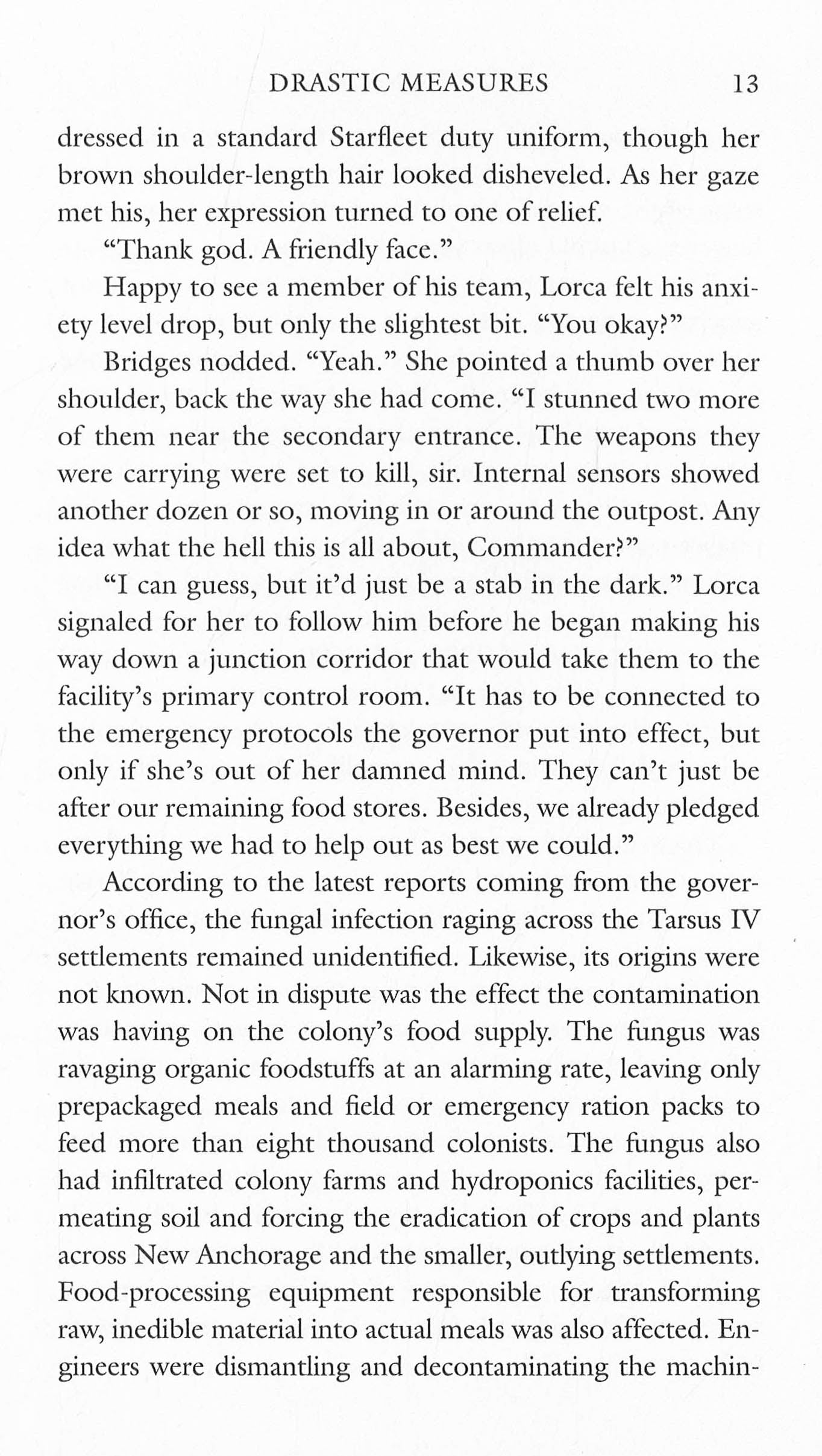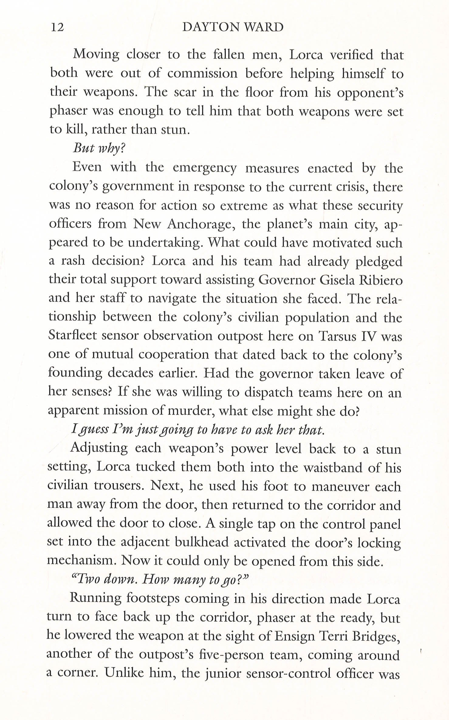 An original novel based upon the explosive new Star Trek TV series on CBS All Access!It is 2246, ten years prior to the Battle at the Binary Stars, and an aggressive contagion is ravaging the food supplies of the remote Federation colony Tarsus IV and the eight thousand people who call it home. Distress signals have been sent, but any meaningful assistance is weeks away. Lieutenant Commander Gabriel Lorca and a small team assigned to a Starfleet monitoring outpost are caught up in the escalating crisis, and bear witness as the colony's governor, Adrian Kodos, employs an unimaginable solution in order to prevent mass starvation. While awaiting transfer to her next assignment, Commander Philippa Georgiou is tasked with leading to Tarsus IV a small, hastily assembled group of first responders. It's hoped this advance party can help stabilize the situation until more aid arrives, but Georgiou and her team discover that they're too late-Governor Kodos has already implemented his heinous strategy for extending the colony's besieged food stores and safeguarding the community's long-term survival. In the midst of their rescue mission, Georgiou and Lorca must now hunt for the architect of this horrific tragedy and the man whom history will one day brand "Kodos the Executioner"....