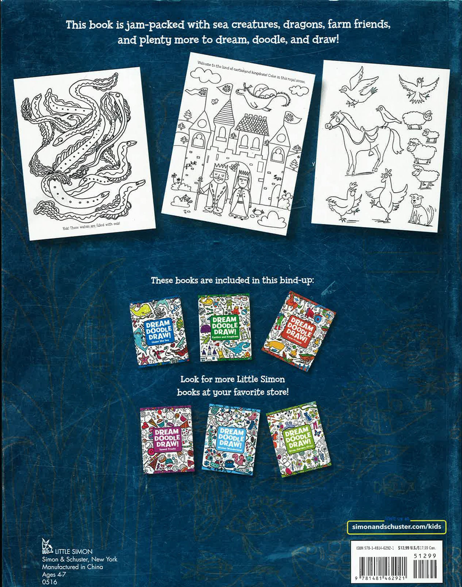 Doodle away to adventureland with this deluxe doodle book that has 288 pages and an awesome foil cover! Color in knights and dragons, connect the dots of a sea creature, doodle on tractors and trucks, and much more with this deluxe coloring and activity book. With fun prompts and activities to inspire the artist within, this mega "Dream Doodle Draw!" book is sure to be a hit! *This book may have remainder mark*