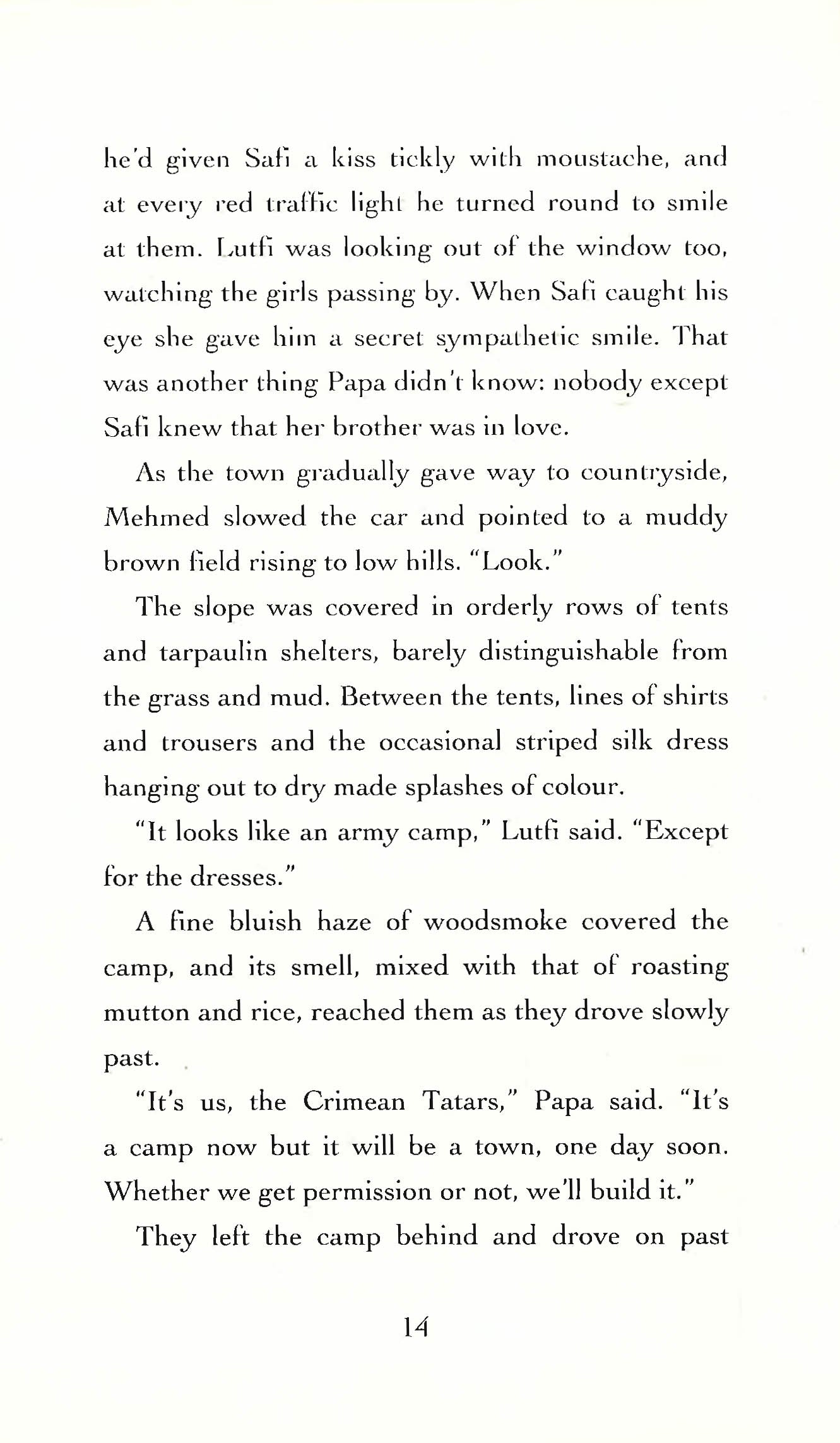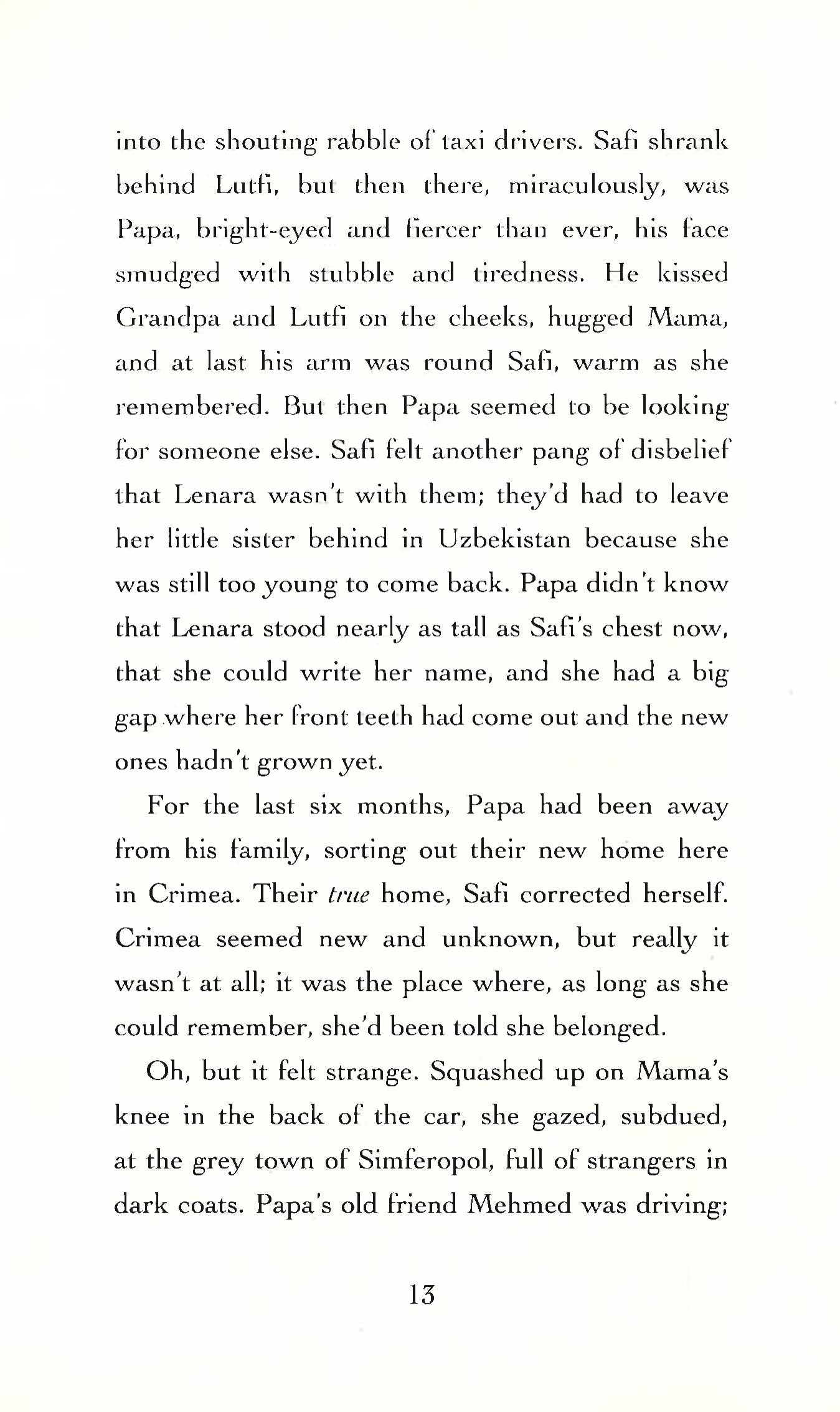 It was meant to be like coming home... All her life, Safi's parents have dreamed of returning to Grandpa's native village in Crimea. But exchanging their sunny Uzbekistan house for a squalid camp is more like a nightmare. Will the return to a country where no one welcomes them tear Safi's family apart, or can this strange land ever become home? A compelling story about the Crimean Tatars' struggle to reclaim the land from which they were exiled in the Second World War.