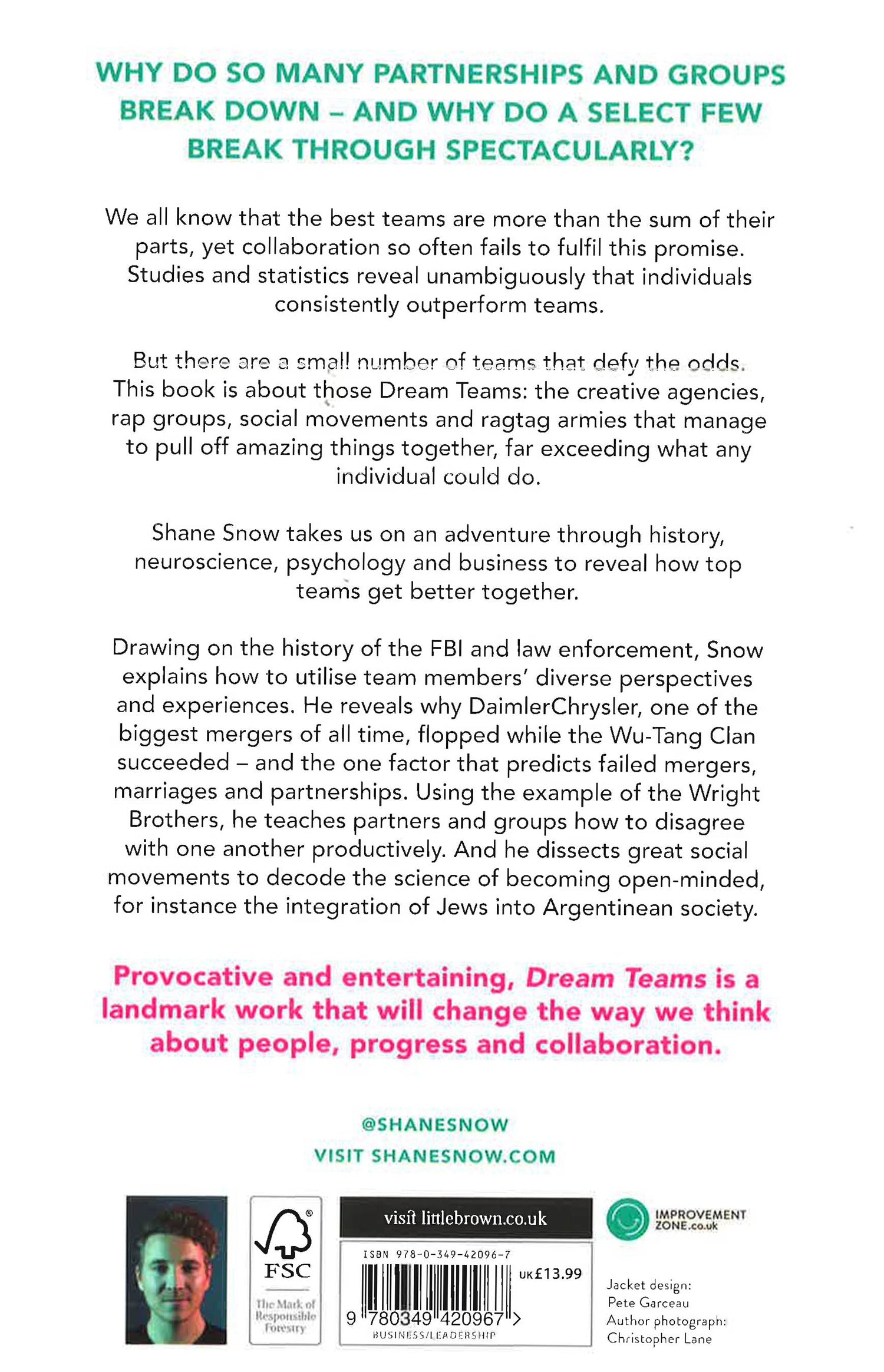 Examining history-making groups like the Wu Tang Clan and the Russian national hockey side alongside teams whose failures have had lasting impact, Snow reveals the answers, and what the rest of us can learn from the rare teams that do the impossible together. In this stimulating, pacey adventure through history, neuroscience, psychology, sports and business, Snow explores the secrets of the best teams the world has to offer.