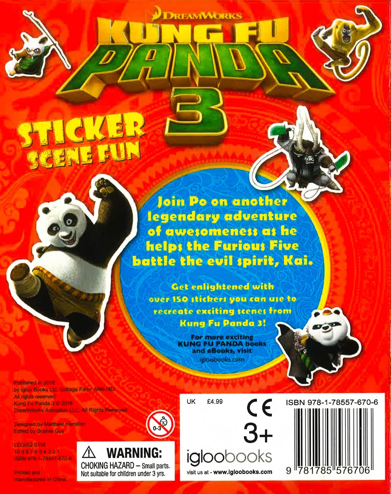 Join Po on another legendary adventure of fantasy as he helps the Furous Five fight the evil spirit of Kai. Learn to light up with over 150 stickers to recreate exciting scenes from Kung Fu Panda 3. Product information: ISBN: 9781785576706. Publisher: igloo books. Format: paperback pages: 16. Dimensions: 20 x 16 x 0.1 cm.