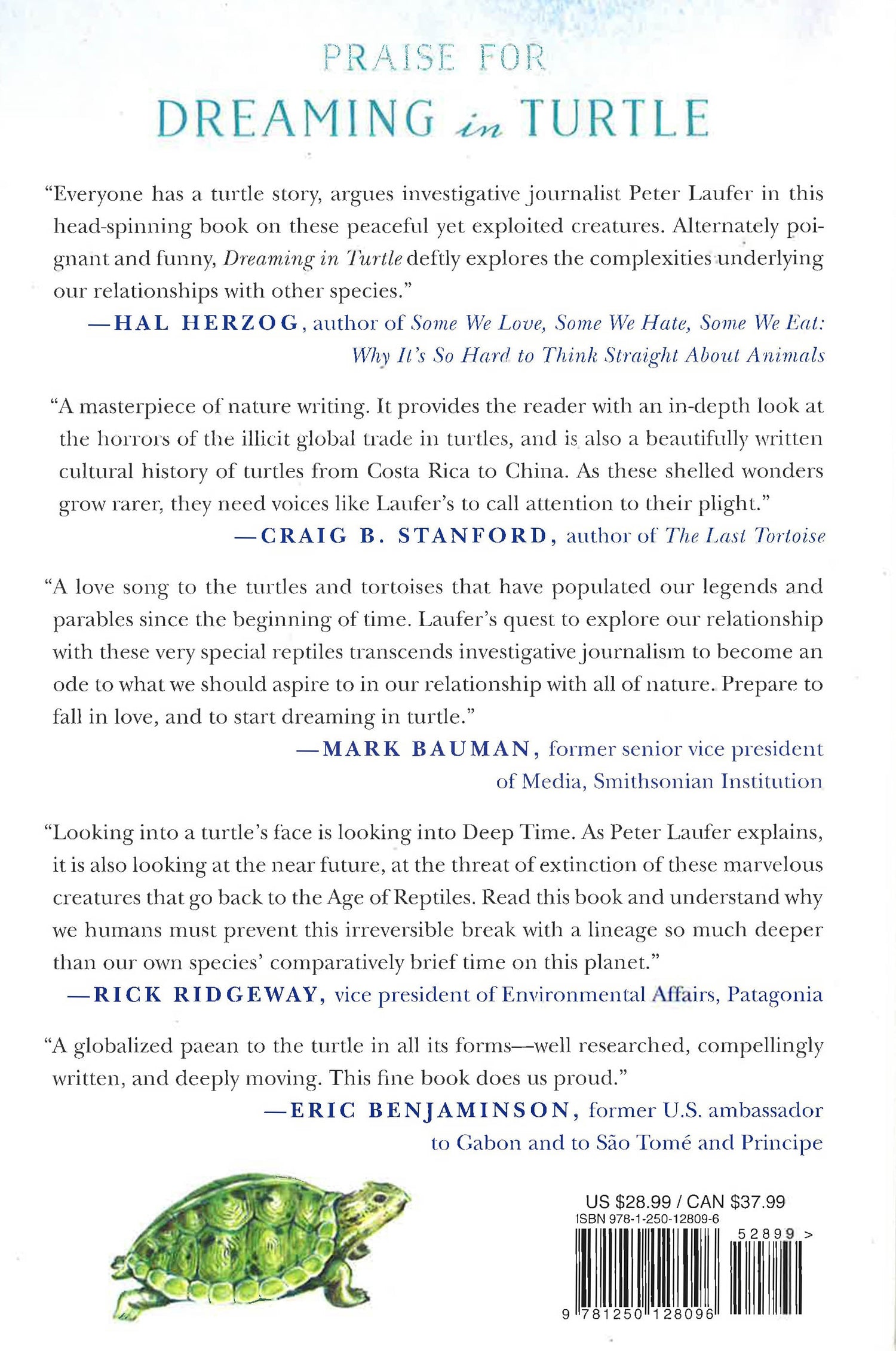 Dreaming in Turtle is a compelling story of a stalwart animal prized from prehistory through to today--an animal threatened by human greed, pragmatism, and rationalization. It stars turtles and shady and heroic human characters both, in settings ranging from luxury redoubts to degraded habitats, during a time when the confluence of easy global trade, limited supply, and inexhaustible demand has accelerated the stress on species. The growth of the middle class in high-population regions like China, where the turtle is particularly valued, feeds this perfect storm into which the turtle finds itself lashed. This is a tale not just of endangered turtles but also one of overall human failings, frailties, and vulnerabilities--all punctuated by optimistic hope for change fueled by dedicated turtle champions.