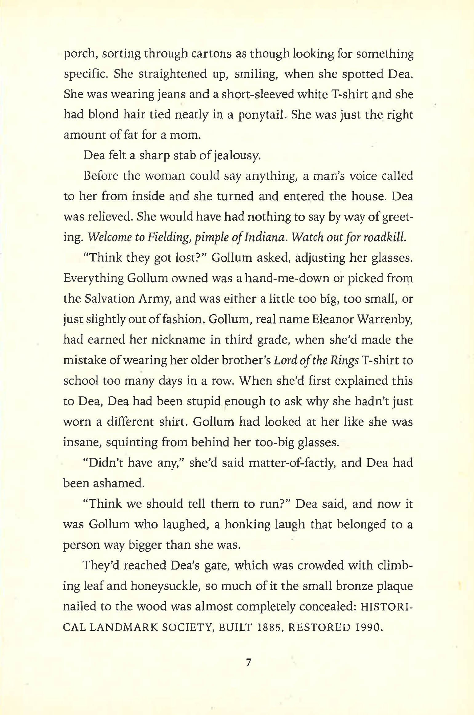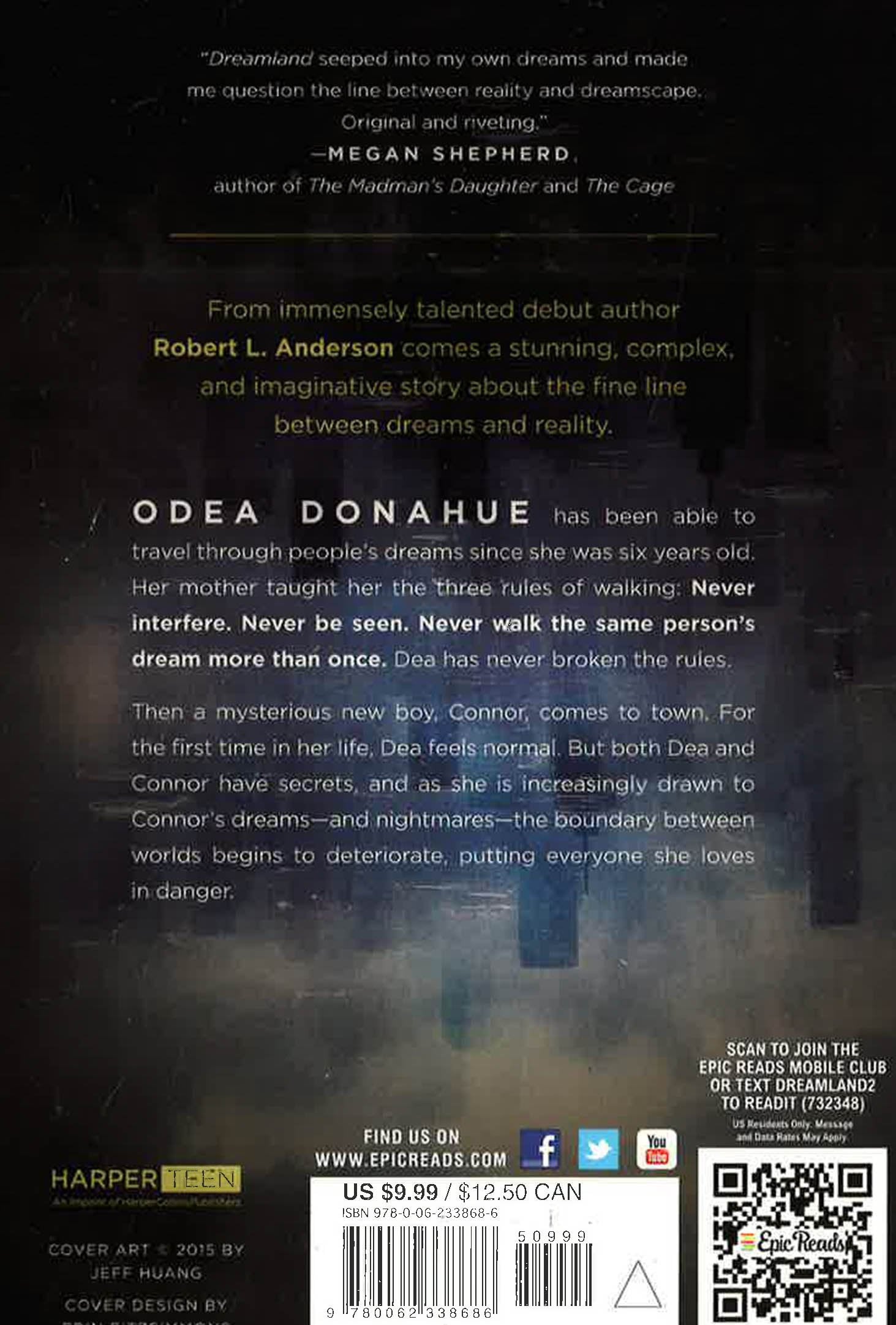 Odea Donahue has been able to travel through people’s dreams since she was six years old. Her mother taught her the three rules of walking: Never interfere. Never be seen. Never walk the same person’s dream more than once. Dea has never broken the rules.Then a mysterious new boy, Connor, comes to town. For the first time in her life, Dea feels normal. But both Dea and Connor have secrets, and as she is increasingly drawn to Connor’s dreams - and nightmares - the boundary between worlds begins to deteriorate, putting everyone she loves in danger.