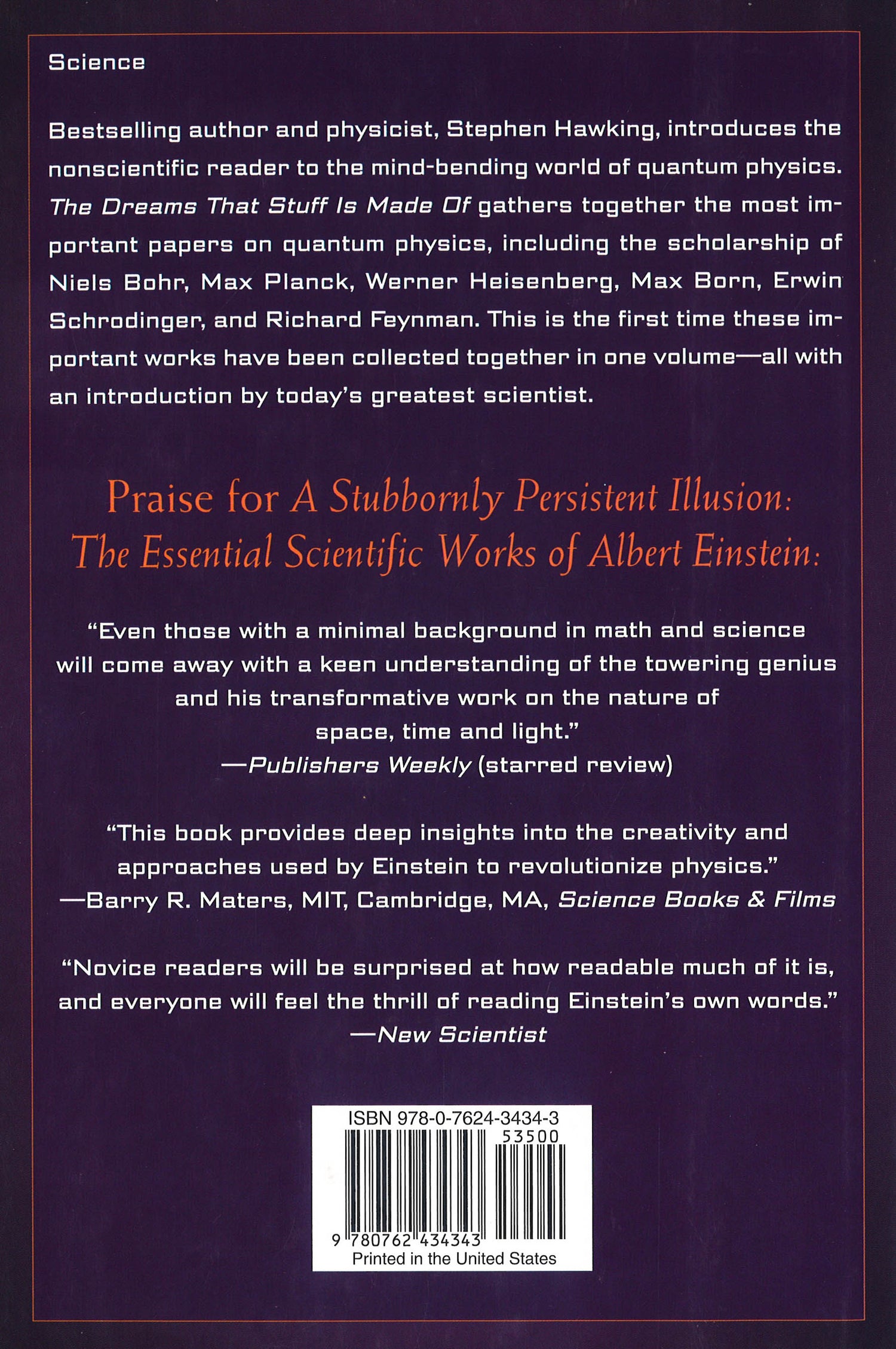"God does not play dice with the universe." So said Albert Einstein in response to the first discoveries that launched quantum physics, as they suggested a random universe that seemed to violate the laws of common sense. This 20th-century scientific revolution completely shattered Newtonian laws, inciting a crisis of thought that challenged scientists to think differently about matter and subatomic particles.The Dreams That Stuff Is Made Of compiles the essential works from the scientists who sparked the paradigm shift that changed the face of physics forever, pushing our understanding of the universe on to an entirely new level of comprehension. Gathered in this anthology is the scholarship that shocked and befuddled the scientific world, including works by Niels Bohr, Max Planck, Werner Heisenberg, Max Born, Erwin Schrodinger, J. Robert Oppenheimer, Richard Feynman, as well as an introduction by today's most celebrated scientist, Stephen Hawking