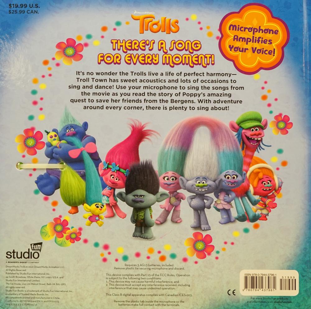 Relive your favorite musical moments from DreamWorks Trolls with this hardcover book that comes with a removable amplifying microphone. It's no wonder the Trolls live a life of perfect harmony. Troll Town has sweet acoustics and lots of occasions to sing and dance! Use your microphone to sing the songs from the movie, as you read the story of Poppy's amazing quest to save her friends from the Bergens. With adventure around every corner, there is plenty to sing about!!!! Enjoy hours of fun with your little ones.