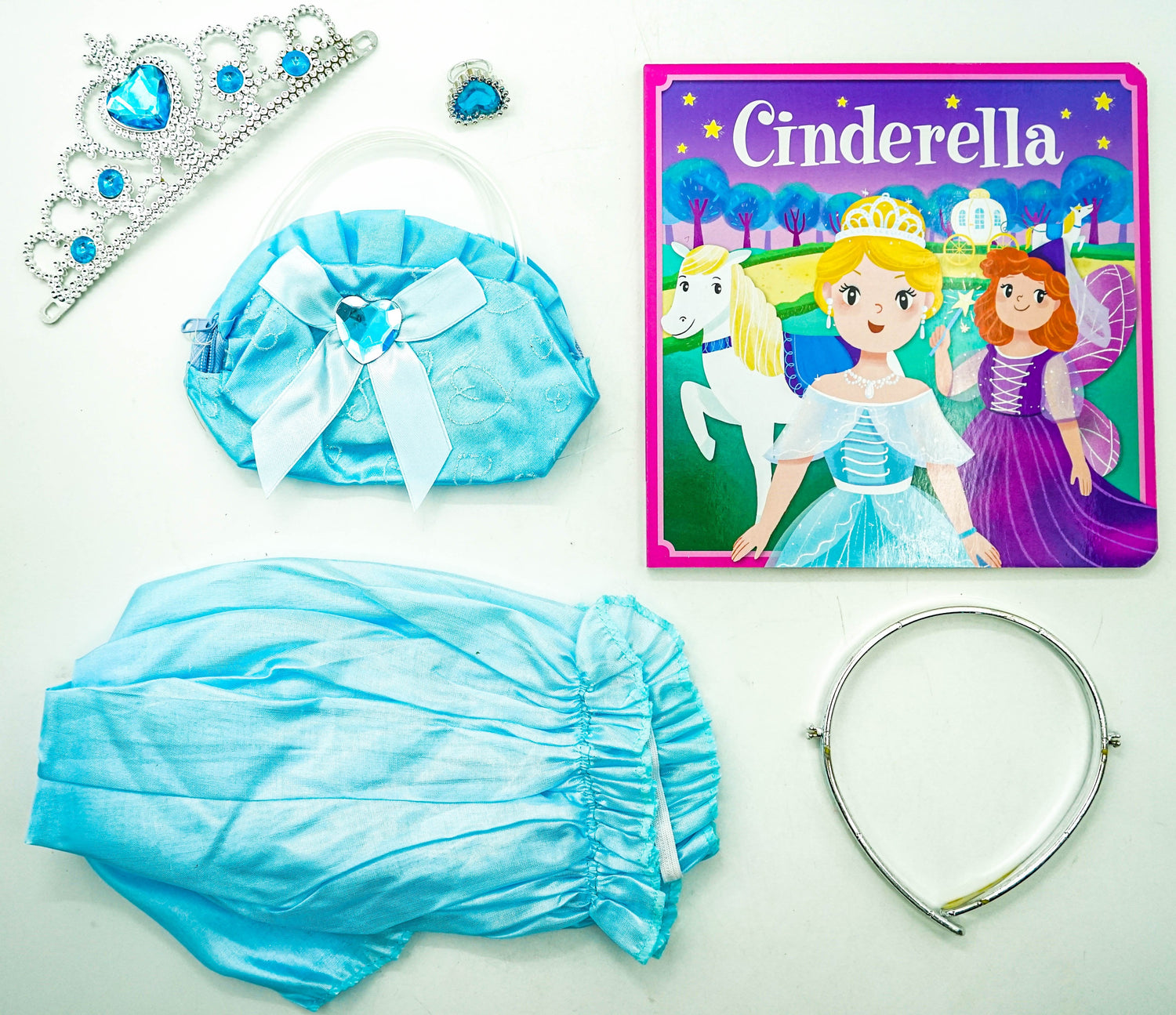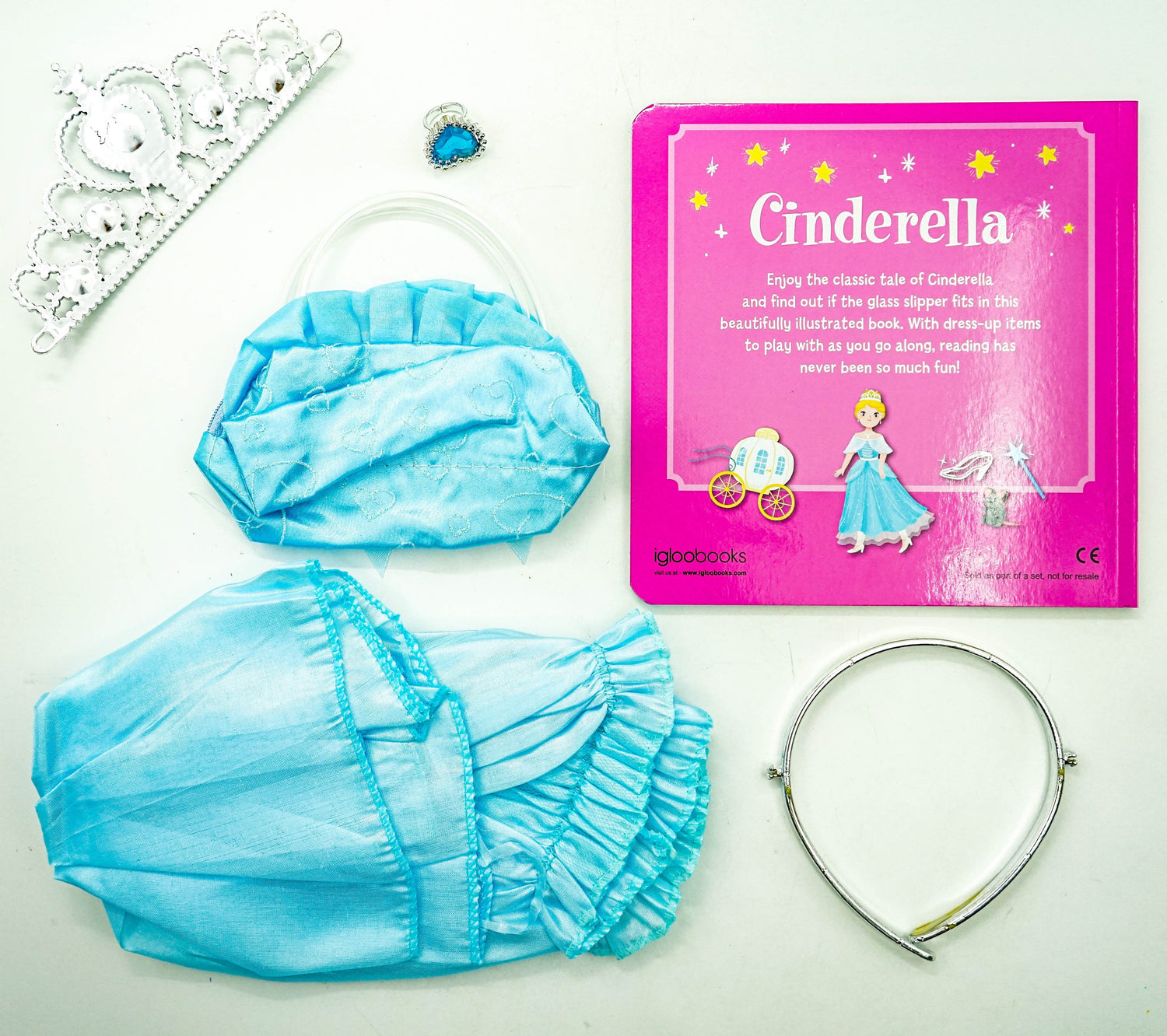 Bring this sweet fairy tale to life with the dress-ups included in this fun-filled play set! Read along with the classic tale of Cinderella and use the same dress-up items that you see your favourite characters wearing in the book. Includes pouch/handbag, ring, princess skirt and tiara.