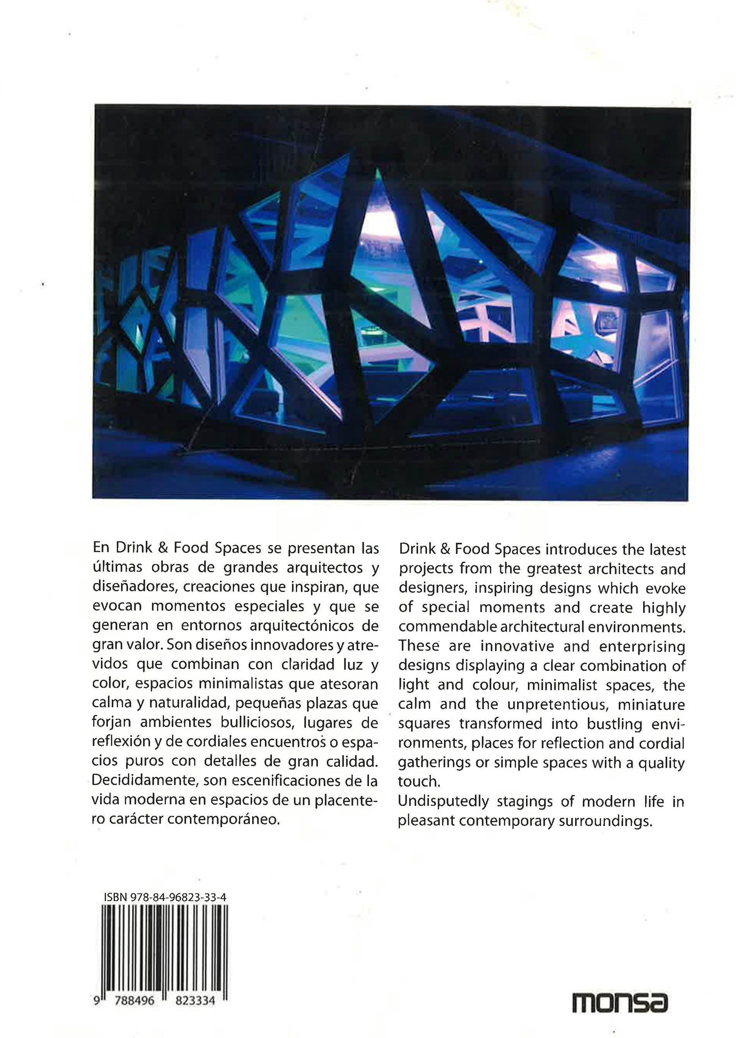 En Drink & Food Spaces se presentan las últimas obras de grandes arquitectos y diseñadores, creaciones que inspiran, que evocan momentos especiales y que se generan en entornos arquitectónicos de gran valor. Son diseños innovadores y atrevidos que combinan con claridad luz y color, espacios minimalistas que atesoran calma y naturalidad, pequeñas plazas que forjan ambientes bulliciosos, lugares de reflexión y de cordiales encuentros o espacios puros con detalles de gran calidad. Decididamente, son escenificaciones de la vida moderna en espacios de un placentero carácter contemporáneo.