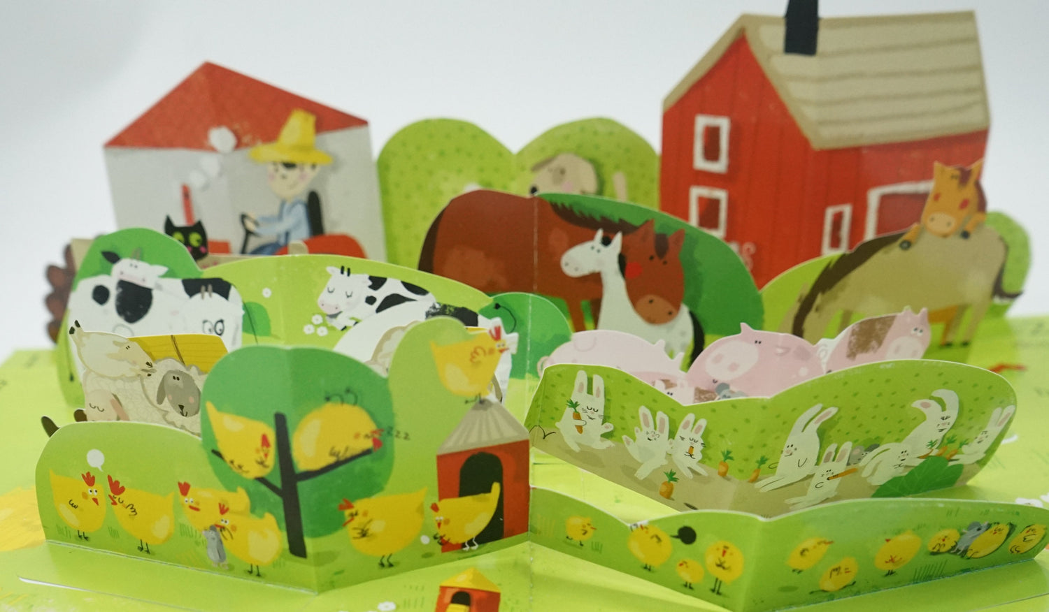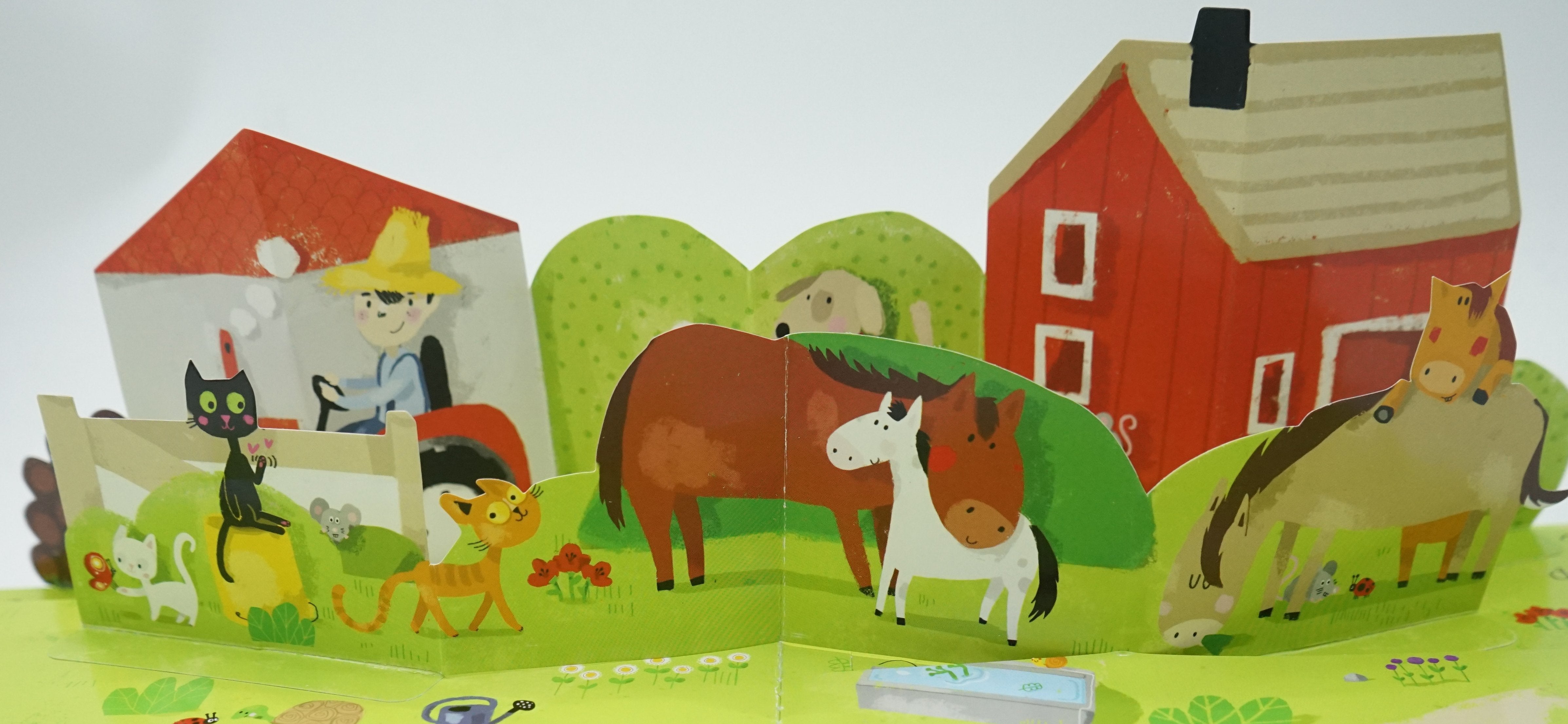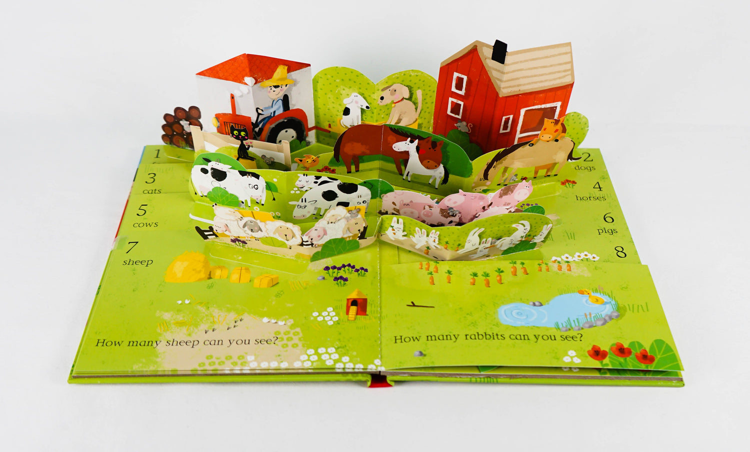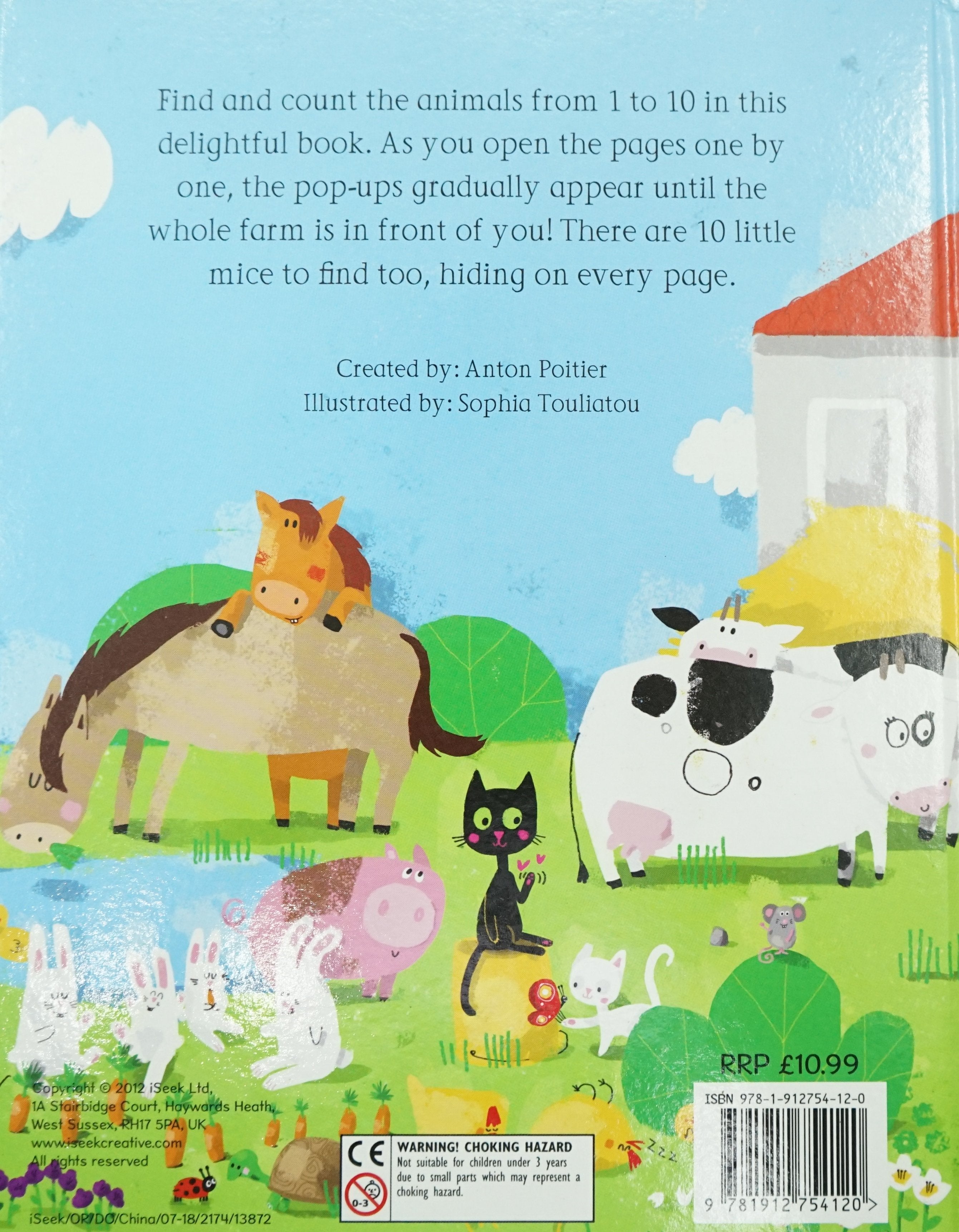 Find and count the farm animals from 1 to 10 and find all the people of the town in this delightful pair of pop-up books. As you open the pages one by one, the pop-ups gradually appear until the whole scene is in front of you. There are 10 little mice and 10 little birds to find too, hiding on every page.