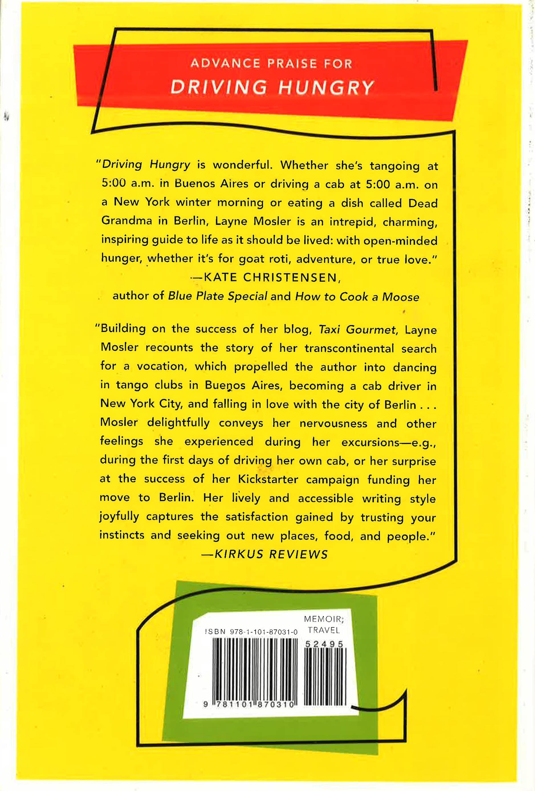 After putting her dream of opening her own restaurant on hold, Layne Mosler moves to Buenos Aires to write about food. But she is also in search of that elusive "something" that could give shape to her life. One afternoon, fleeing a tango club following a terrible turn on the dance floor, she impulsively asks her taxista to take her to his favorite restaurant. Soon she is savoring one of the best steaks of her life and, in the weeks that follow, repeating the experiment with equally delectable results. So begins the gustatory adventure that becomes the basis for Mosler s cult blog, "Taxi Gourmet." It eventually takes her to New York City, where she continues her food quests, hailing cabs and striking up conversations from the back seat, until she meets a pair of extraordinary lady cab drivers who convince her to become a taxi driver herself. Between humbling (and hilarious) episodes behind the wheel, Mosler reads about the taxi drivers in Berlin, who allegedly know as much about Nietzsche as they do about sausage. Intrigued, she travels to the German capital, where she develops a passion for the city, its restlessness, its changing flavors, and a certain fellow cab driver who shares her love of the road.