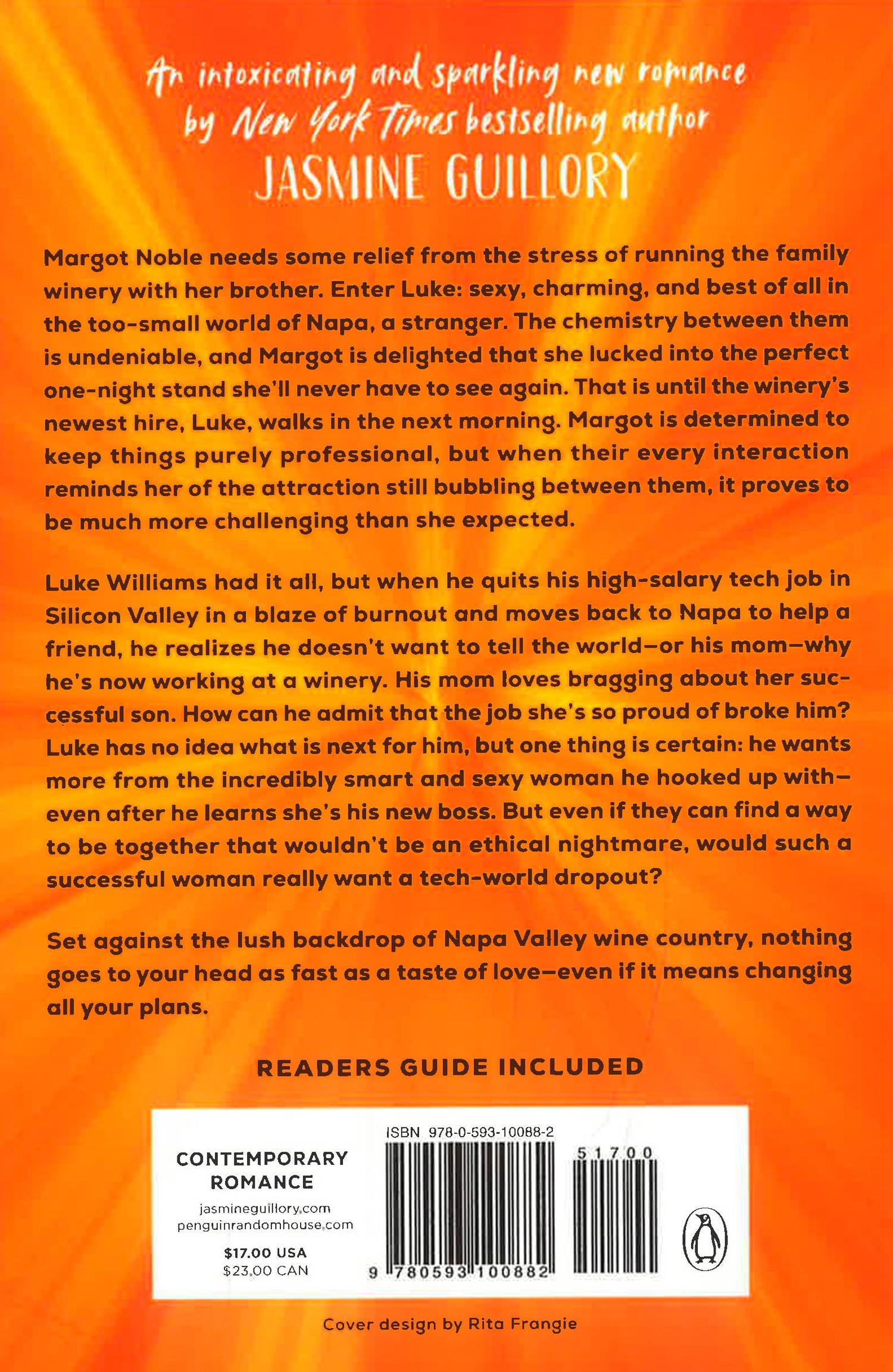 Margot Noble needs some relief from the stress of running the family winery with her brother. Enter Luke: sexy, charming, and best of all in the too-small world of Napa, a stranger. The chemistry between them is undeniable, and Margot is delighted that she lucked into the perfect one-night stand she’ll never have to see again. That is, until the winery’s newest hire, Luke, walks in the next morning. Margot is determined to keep things purely professional, but when their every interaction reminds her of the attraction still bubbling between them, it proves to be much more challenging than she expects.