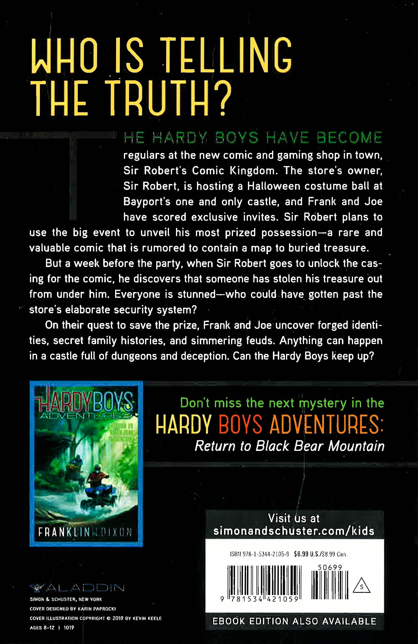 Brother detectives Frank and Joe search a hidden castle for clues to help them find a missing comic book in the nineteenth book in the thrilling Hardy Boys Adventures series.Frank and Joe have been hanging out at Sir Robert’s Comic Kingdom, the local comic and gaming shop, and got the exclusive invite to this year’s Halloween costume ball at Bayport’s one and only castle. Sir Robert plans to use the big event to unveil his most prized possession, a super rare comic that is rumored to contain a map to buried treasure. Sir Robert agrees to show his store regulars—who now include Frank and Joe—a sneak preview of the comic before the party. But when he goes to unlock the fireproof casing, he finds the book is gone. It will take all of Frank and Joe’s recently acquired LARPing skills to solve this case. Anything can happen in a castle full of dungeons and deception. Can the Hardy boys keep up?
