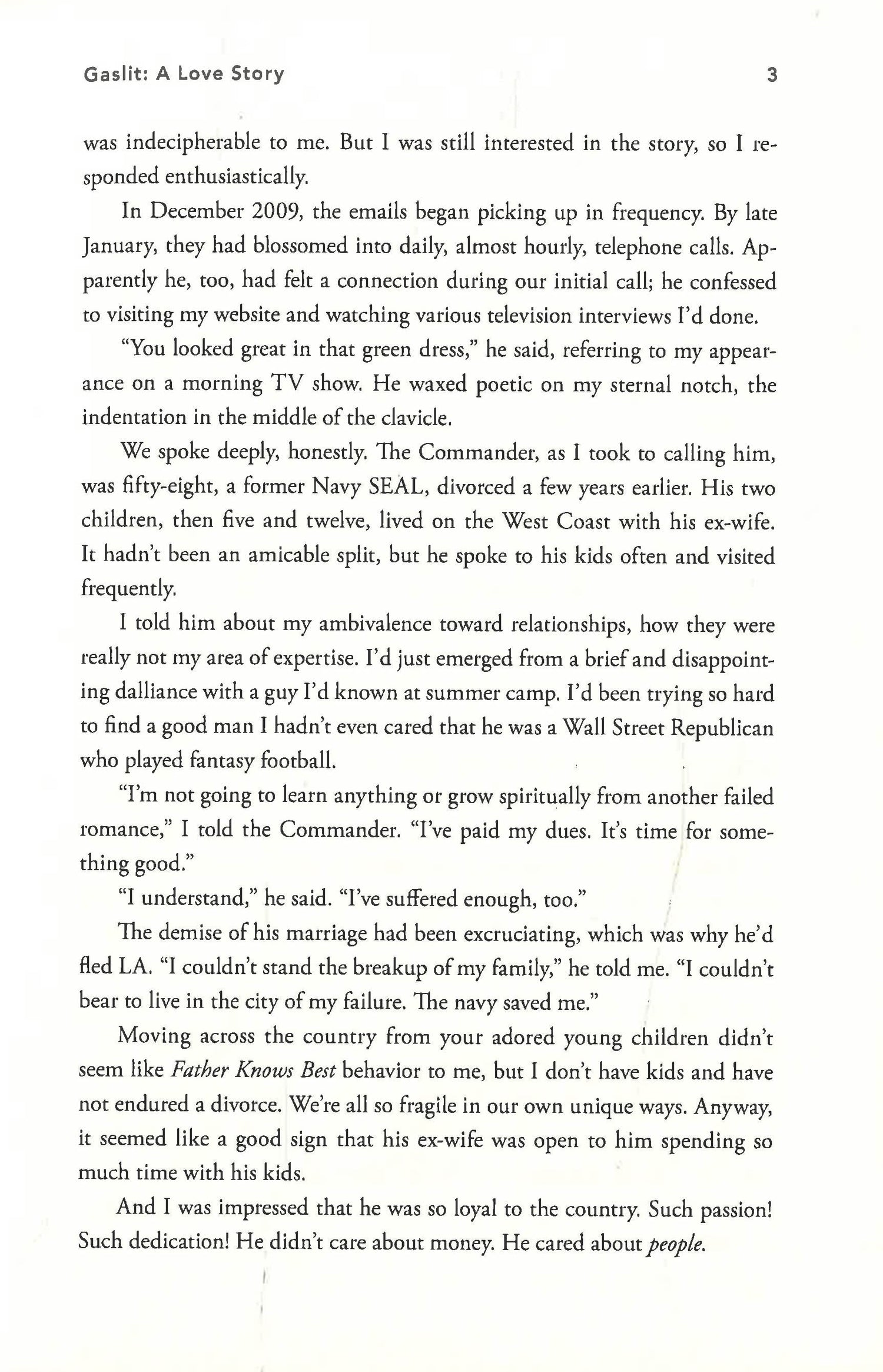 From the day Abby went on her first date with The Commander, she was caught up in a whirlwind. Within five months he'd proposed, and they'd moved in together. But there were red flags: strange stories of international espionage, involving Osama bin Laden and the Pentagon. Soon his stories began to unravel until she discovered, far later than she'd have liked, that he was a complete and utter fraud.