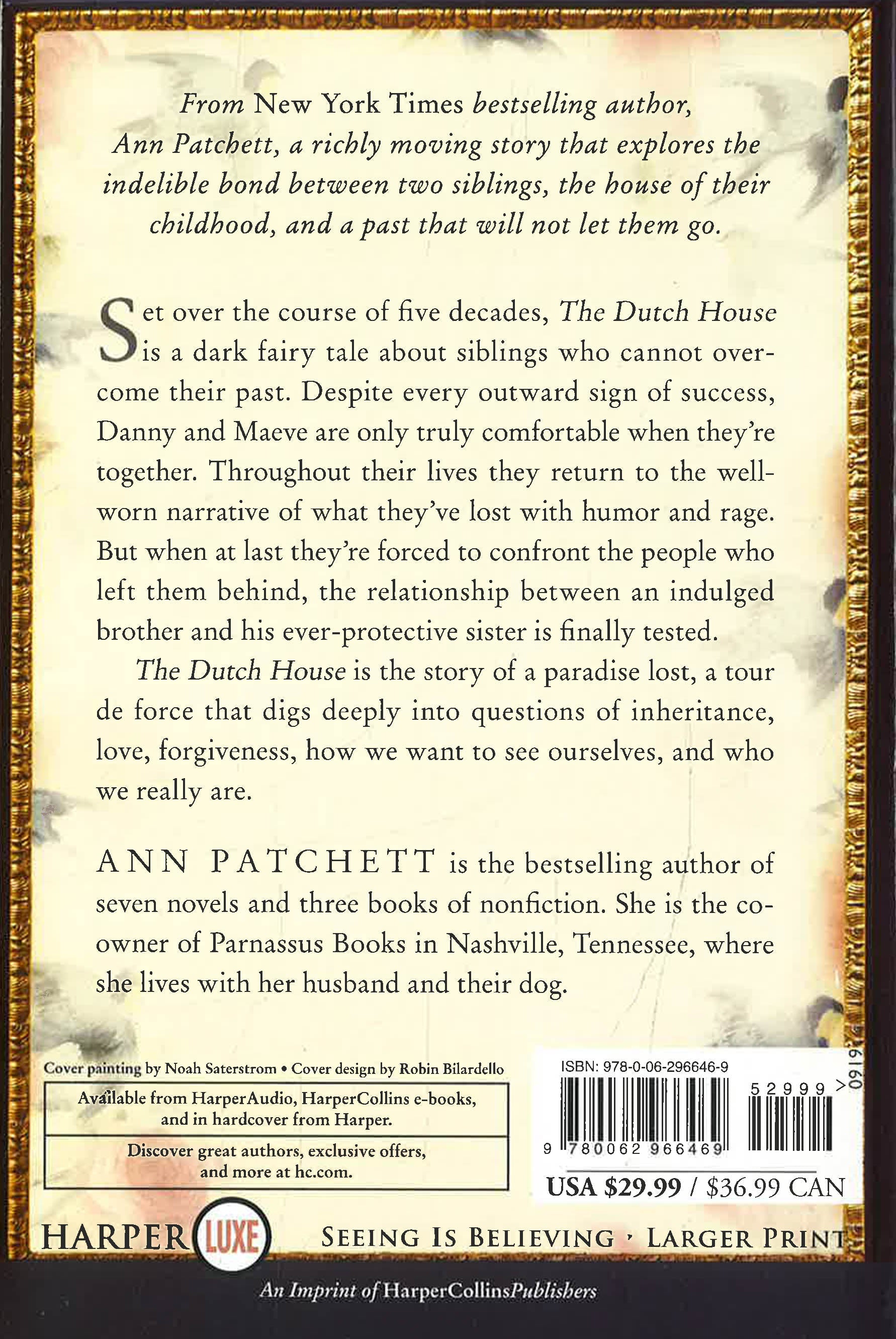 Ann Patchett, the #1 New York Times bestselling author of Commonwealth, delivers her most powerful novel to date: a richly moving story that explores the indelible bond between two siblings, the house of their childhood, and a past that will not let them go. The Dutch House is the story of a paradise lost, a tour de force that digs deeply into questions of inheritance, love and forgiveness, of how we want to see ourselves and of who we really are.