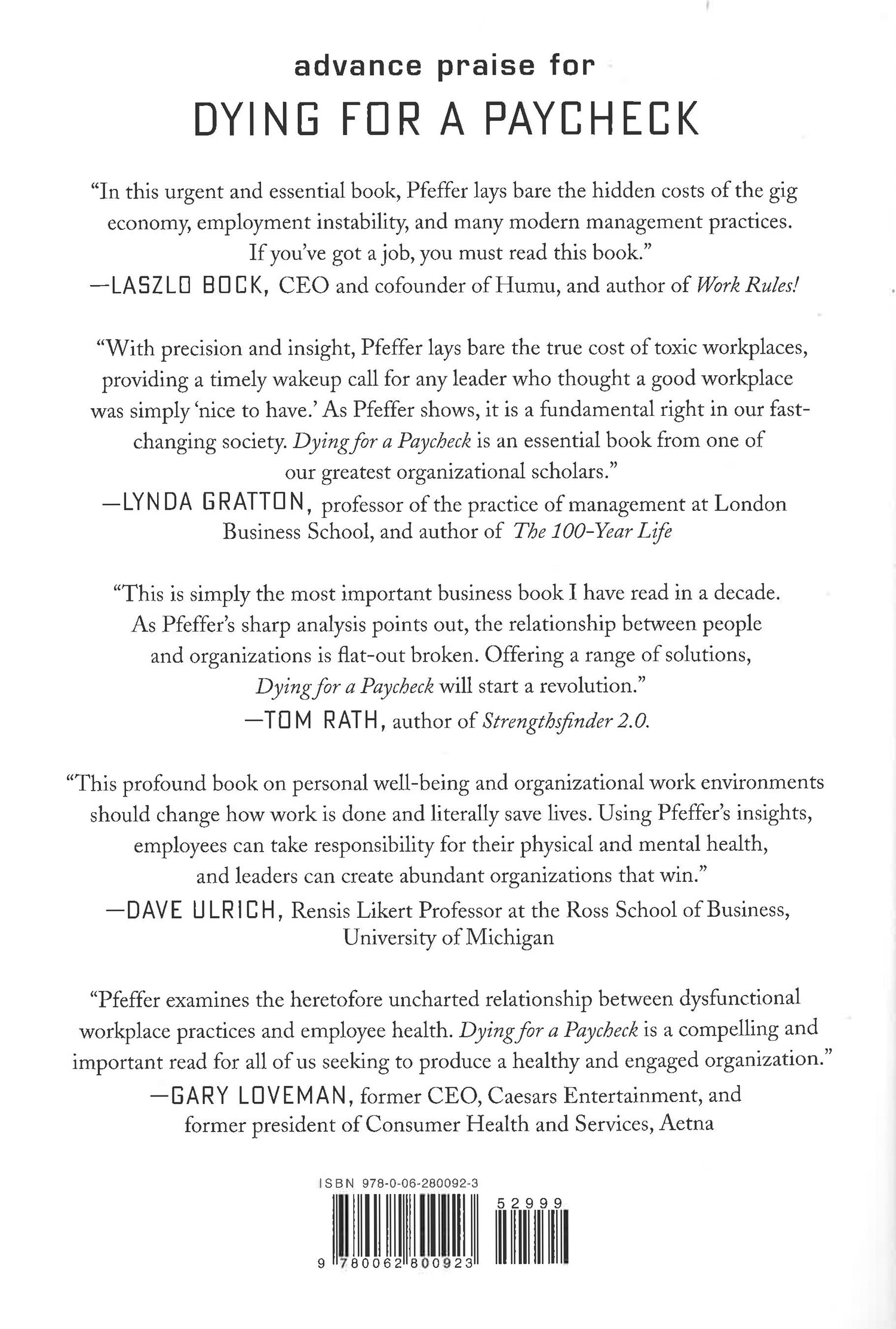 In Dying for a Paycheck, Jeffrey Pfeffer marshals a vast trove of evidence and numerous examples from all over the world to expose the infuriating truth about modern work life: even as organizations allow management practices that literally sicken and kill their employees, those policies do not enhance productivity or the bottom line, thereby creating a lose-lose situation.