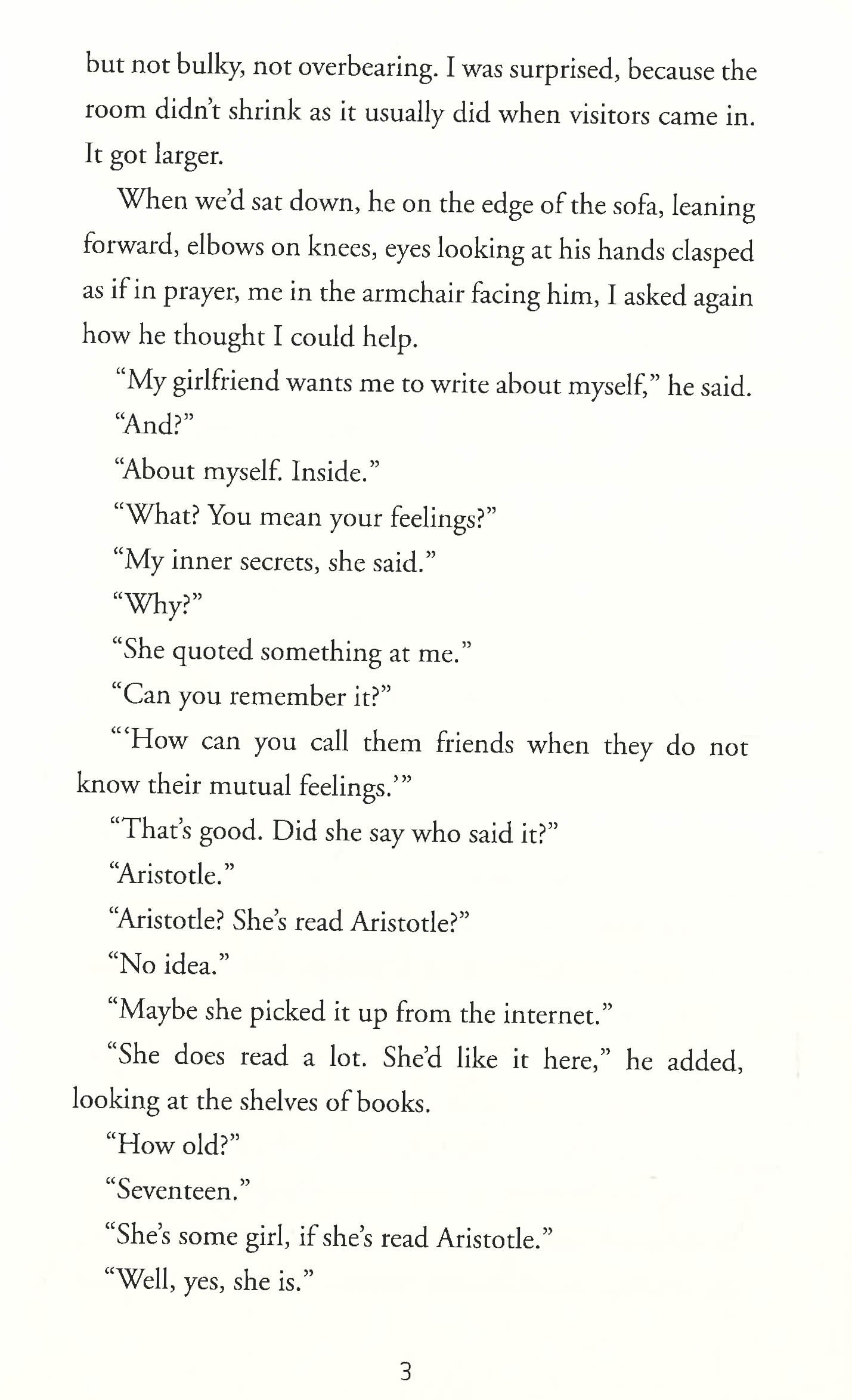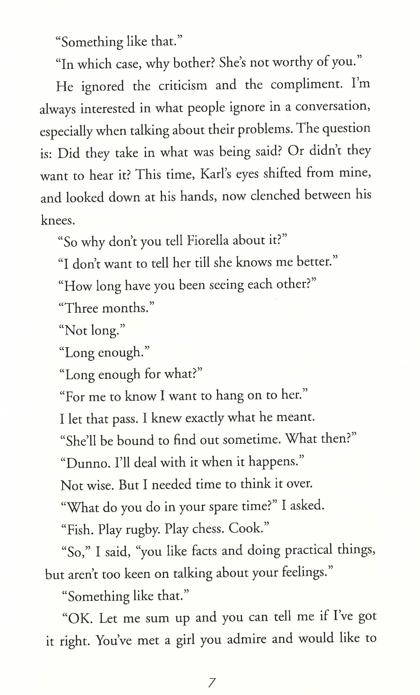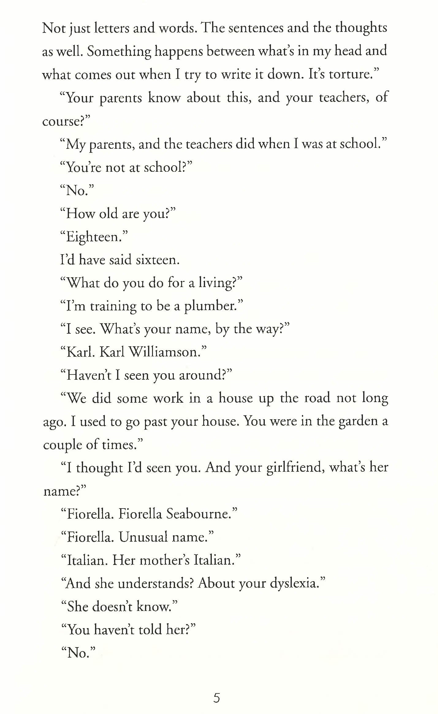Karl, aged seventeen, is hopelessly in love. But the object of his affections, Firella, demands proof, and poses him a series of questions regarding his attitude to the many sides of love. But Karl is dyslexic, and convinced that if Firella finds out, she will think he is stupid, and unworthy of her, and leave him. So Karl asks a local writer to help him construct his replies - and an unlikely, but extremely touching, friendship develops between the two men. They both come to learn a great deal about about life from a very different perspective, and when an act of violence shatters their calm, they find their respective appraisal of life shifting in profound ways.