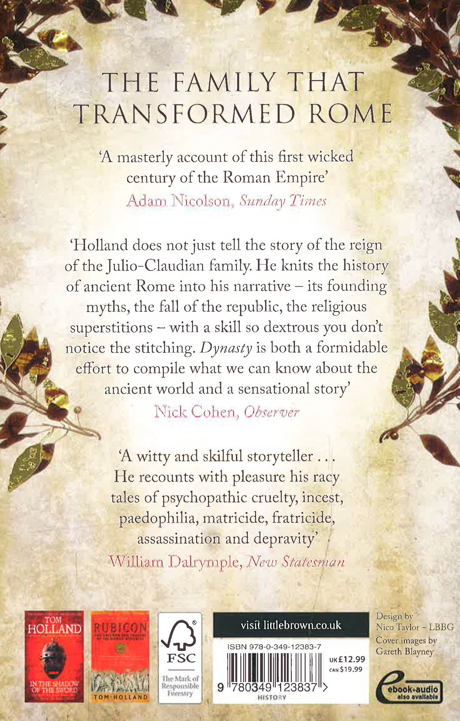 This is a wonderful, surging narrative - a brilliant and meticulous synthesis of the ancient sources . . . This is a story that should be read by anyone interested in history, politics or human nature - and it has never been better told' - Boris Johnson, Mail on Sunday Rome was first ruled by kings, then became a republic. But in the end, after conquering the world, the Republic collapsed. Rome was drowned in blood. So terrible were the civil wars that the Roman people finally came to welcome the rule of an autocrat who could give them peace. 'Augustus,' their new master called himself: 'The Divinely Favoured One'. The lurid glamour of the dynasty founded by Augustus has never faded. No other family can compare for sheer unsettling fascination with its gallery of leading characters. Tiberius, the great general who ended up a bitter recluse, notorious for his perversions; Caligula, the master of cruelty and humiliation who rode his chariot across the sea; Agrippina, the mother of Nero, manoeuvering to bring to power the son who would end up having her murdered; Nero himself, racing in the Olympics, marrying a eunuch, and building a pleasure palace over the fire-gutted centre of his capital. Now, in the sequel to Rubicon, Tom Holland gives a dazzling portrait of Rome's first imperial dynasty. Dynasty traces the full astonishing story of its rule of the world: both the brilliance of its allure, and the blood-steeped shadows cast by its crimes. Ranging from the great capital rebuilt in marble by Augustus to the dank and barbarian-haunted forests of Germany, it is populated by a spectacular cast: murderers and metrosexuals, adulterers and druids, scheming grandmothers and reluctant gladiators. Dynasty is the portrait of a family that transformed and stupefied Rome.