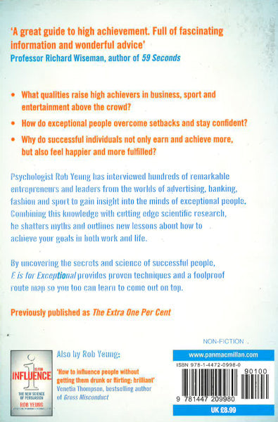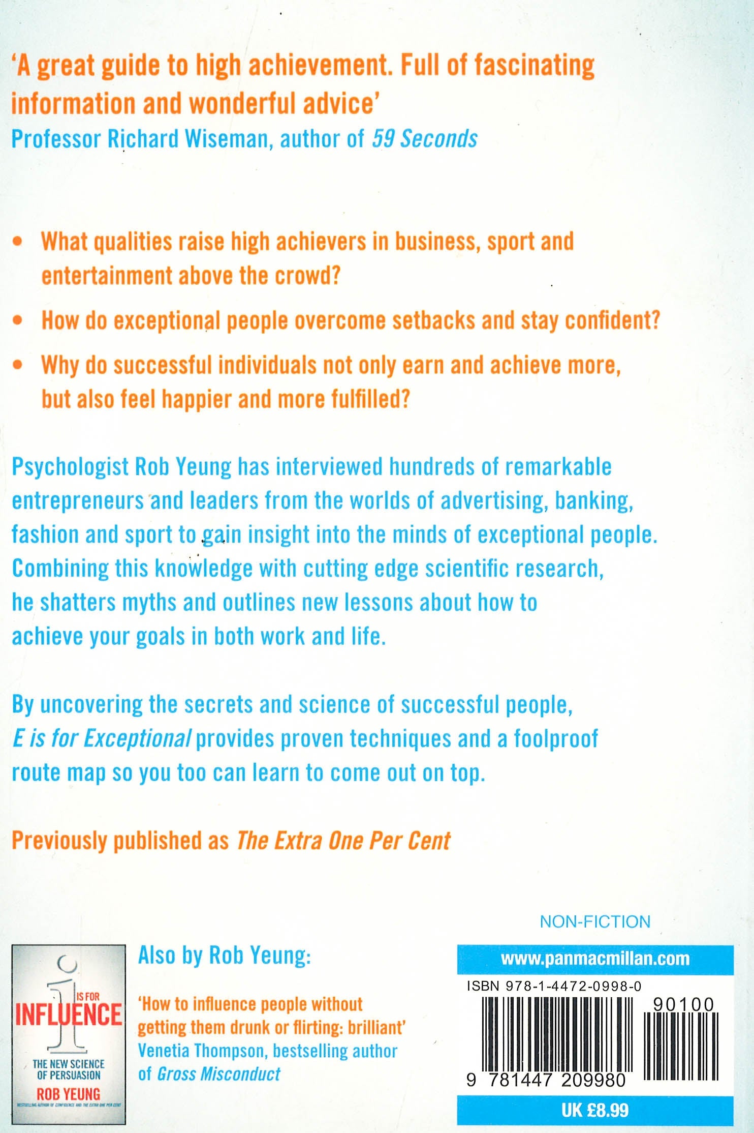 Discover how to rise above the crowd and be extraordinary Over the last decade, Rob Yeung has interviewed hundreds of high achievers in business, sport and entertainment to gain insight into the minds of successful people. Combining this knowledge with a wealth of scientific research, he has defined the subtle yet crucial differences that distinguish exceptional people from everyone else. By reading this book you will: - Discover the critical mindset that allows high achievers to generate creative ideas - Learn the secret psychology that helps you to influence and persuade others to come round to your way of thinking - Develop practical techniques for boosting your relationships and earning and achieving more