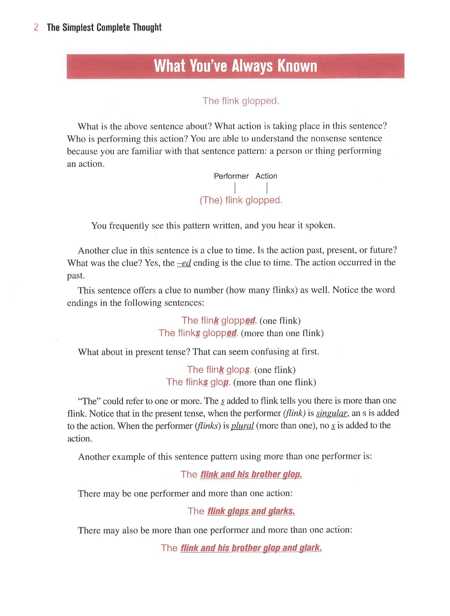 The authors demonstrate the process of translating coherent thinking into coherent grammar, with attention to all parts of speech, verb tenses and moods. Examples of proper sentence construction deal with simple, compound, and complex sentences, and demonstrate agreement in number, correct sequence of tenses, and more. Other topics covered include punctuation, vocabulary building, and writing style. Exercises with answers appear throughout the text.