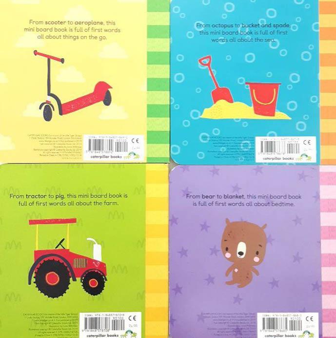 From the farm to the sea and vehicles on the go to brilliant things you'll see at bedtime, these mini board books are full of first words for children to find and learn.